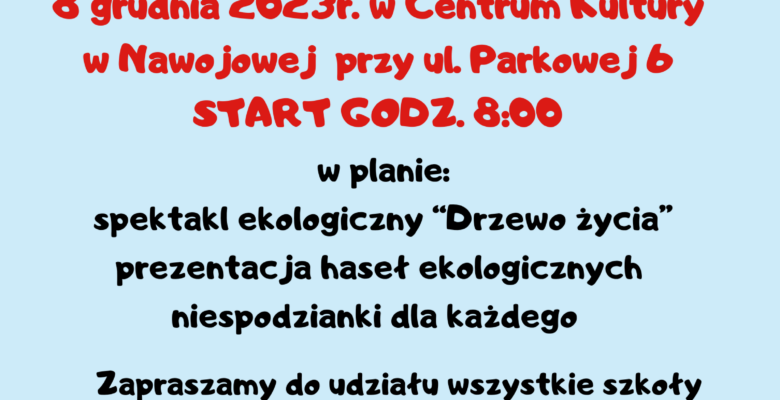 W najbliższy piątek w Gminie Nawojowa odbędą się EKO MIKOŁAJKI w nowo otwartym Centrum Kultury w Nawojowej. W programie temat przewodni: EKOLOGIA -szczegóły na plakacie.
