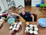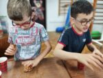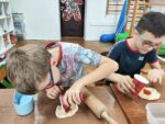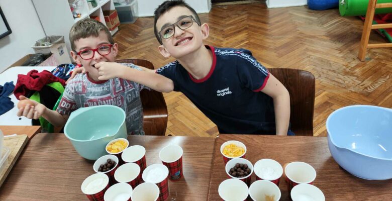 W naszej szkole cały czas pamiętamy o dostosowaniu metod pracy do indywidualnych potrzeb psychofizycznych naszych uczniów, by wspierać ich rozwój i uatrakcyjniać zajęcia obowiązkowe. Dlatego też piątkowe lekcje polegały na stymulacji polisensorycznej, czyli oparte były na wielozmysłowym pobudzeniu rozwoju naszych uczniów. Przy wykorzystaniu składników dostępnych w każdej kuchni, oddziaływaliśmy na zmysł wzroku, dotyku, węchu, słuchu, a nawet smaku! Chłopcy dotykali produktów o różnych konsystencjach, wąchali przyprawy i… podjadali płatki. Tworzyli własne ciasto, które następnie mieszali z naszymi dodatkami. Podczas tych zajęć, oprócz zmysłów, bardzo intensywnie usprawniali motorykę małą poprzez ugniatanie, wałkowanie i formowanie różnych kształtów. Było przy tym mnóstwo dobrej zabawy i odrobina bałaganu, ale wszyscy byliśmy bardzo zadowoleni i gotowi na kolejne wyzwania!