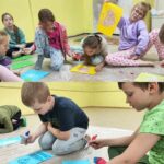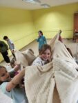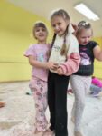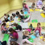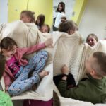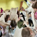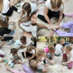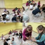 Świetlicowej sensoryki ciąg dalszy! Dzisiaj postanowiliśmy rozruszać wszystkie nasze zmysły. Na początku Świetliczaki zmierzyły się z niełatwym zadaniem – przemierzaniem boso ścieżki sensorycznej, stworzonej m.in z soli do kąpieli, kaszy, makaronu, gąbek, ryżu, co pozwoliło na zwiększenie doznań! Choć twierdzili, że nogi trochę bolą, to bardzo ciężko było ich oderwać od tego zadania. Przyjemność sprawiał nawet odgłos łamiącego się pod stopami makaronu. Następnie zadbaliśmy o dostarczenie bodźców proprioceptywnych poprzez huśtanie w kocu oraz zawijanie w niego uczniów. Zgodnie z zasadą ,,zero waste” produkty ze ścieżki wykorzystaliśmy do pracy plastycznej. Zajęcia zakończyliśmy tym, co dzieci lubią najbardziej – masą plastyczną. Dzisiaj był to własnoręcznie robiony piasek kinetyczny i pokolorowany kredą. Kochani rodzice, wybaczcie brudne ubrania i stopy, ta wspaniała zabawa była tego warta!