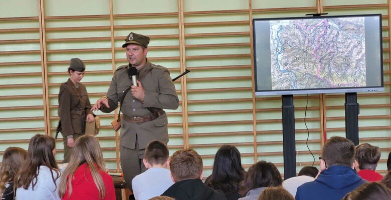 24 maja uczniowie klas 5-8 wzięli udział w jednym ze spotkań edukacyjnych, które zakładają wyznaczenie oraz oznakowanie ścieżek i punktów „Szlaku Sądeckich Żołnierzy Wyklętych”, udział w grze terenowej, a także realizację wystawy związanej ze szlakiem wraz z wydaniem katalogu. Prelekcja prezesa Stowarzyszenia Żandarmeria, Kamila Olesińskiego, była poświęcona założeniom i celom, które dotyczyły realizacji projektu oraz historii Sądeckich Żołnierzy Wyklętych. Poprzez dzielenie się wiedzą na temat historii związanej z tematem wydarzenia oraz uczestniczenie w pracach dotyczących utworzenia szlaku, a także wystawy i katalogu nasi uczniowie aktywnie brali udział w akcji.