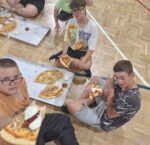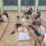 Dzięki inicjatywie naszego przewodniczącego szkoły – Filipa Jabłońskiego w minionym tygodniu – z wtorku na środę uczniowie klas 7a, 7b i 8 mieli niepowtarzalną okazję spędzić noc w szkole. Była to nagroda za ich zaangażowanie i pomoc w pracę Samorządu Uczniowskiego, która w znaczący sposób przyczyniła się do sukcesów i atrakcyjności naszej szkoły. Wieczór rozpoczął się emocjonującym turniejem siatkówki, gdzie młodzież rywalizowała w przyjacielskiej atmosferze, pokazując swoje sportowe umiejętności. Następnie pani Małgorzata Podwika poprowadziła zabawy integracyjne, które pozwoliły nam lepiej się poznać i zacieśnić więzi między klasami. Nie zabrakło również chwili wytchnienia przy pysznej pizzy, która dostarczyła energii na resztę nocy. Niespodzianką wieczoru była wizyta pana dyrektora, który chyba chciał sprawdzić, czy grzecznie się bawimy i oczywiście się na nas nie zawiódł! Jego obecność dodała nam motywacji do dalszej zabawy i pokazała, jak ważne jest wsparcie nauczycieli i kadry zarządzającej dla naszej szkolnej społeczności. Później miało odbyć się wspólne oglądanie filmu, ale jednak wieczorne pogaduszki w śpiworach były lepszą atrakcją. To niezapomniane nocowanie w szkole było nie tylko świetną zabawą, ale również dowodem na to, że współpraca i zaangażowanie przynoszą wspaniałe efekty. Dziękujemy opiekunom całego wydarzenia: pani Monice Kłap, pani Klaudii Tworzydło i pani Małgorzacie Podwice, bo wiemy, że tej nocy raczej nie naładowały baterii na kolejny dzień. Mamy nadzieję, że takie wydarzenia staną się naszą szkolną tradycją!