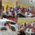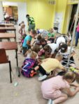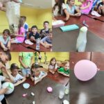 Kolejnym elementem naszych zajęć było tworzenie gniotków, tak uwielbianych przez dzieci. Tym razem użyliśmy do nich balonów, wody i kulek hydrożelowych. Dzieci mogły też dać upust swojej wyobraźni, tworząc kolorowe dzieła na świeżym powietrzu przy pomocy kredy. Rysunki ozdobiły nasze szkolne podwórko i wprowadziły nas w wakacyjny nastrój.