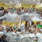 Następnie podziwiały eksplozję piany, która na wszystkich zrobiła ogromne wrażenie. Zdziwienie wywołał eksperyment ze znikającym styropianem i jajkiem, które wpadło do butelki, pomimo że było dużo większe niż jej otwór oraz kwiatami, które zmieniły swą białą barwę po dodaniu barwników do wody, w której się znajdowały. Szczególnym zainteresowaniem cieszyły się zabawy z suchym lodem, od których dzieci nie mogły się oderwać.