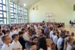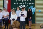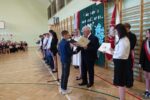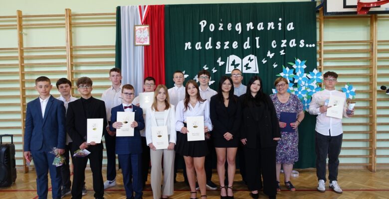 Ostatnie spotkania w szkole rozpoczęliśmy od czwartkowej mszy świętej, którą sprawował nasz drogi ksiądz Mirosław Kurek. Była to okazja do refleksji i podziękowań za miniony rok. Druga część uroczystości miała miejsce 21 czerwca o godz. 7.30 na sali gimnastycznej, gdzie zgromadzili się uczniowie, rodzice, nauczyciele oraz zaproszeni goście. Na początku głos zabrał Wójt Gminy Nawojowa, pan dr inż. Stanisław Kiełbasa. W swoim przemówieniu wyraził dumę z osiągnięć uczniów oraz wdzięczność nauczycielom za ich trud i poświęcenie. Następnie pan Wójt wręczył stypendia Wójta Gminy Nawojowa dla najlepszych uczniów, którzy osiągnęli wysokie wyniki w nauce i sporcie. Kolejnym punktem programu był pożegnalny występ klasy ósmej. Uczniowie zaprezentowali swój program artystyczny. Na zakończenie wzruszającego występu, absolwenci podziękowali swojej wychowawczyni – pani Marcie Jurczak za jej wsparcie i opiekę przez wszystkie lata nauki w szkole podstawowej. Następnie klasy siódme pożegnały swoich starszych kolegów, wręczając im pamiątkowe upominki. Uczniowie zaśpiewali piosenkę, a także skierowali do nich miłe słowa pełne życzeń na przyszłość. W imieniu Samorządu Uczniowskiego przewodniczący szkoły podziękował naszym kolegom za wspólne lata zabawy, integracji, przyjaźni i wraz z opiekunami wręczył im symboliczne bilety wstępu do szkoły średniej, życząc im sukcesów na nowym etapie edukacji. Po części artystycznej głos zabrała Rada Rodziców, która podziękowała dyrekcji, nauczycielom oraz wszystkim pracownikom szkoły za ich zaangażowanie i wysiłek włożony w miniony rok szkolny. Na koniec uroczystości przemówienie wygłosił nasz pan dyrektor – mgr Paweł Bodziony. Podsumował on szkolne wyniki, prezentując średnie ocen z poszczególnych przedmiotów oraz wyróżniając uczniów, którzy osiągnęli najlepsze wyniki. Pogratulował wszystkim uczniom ich sukcesów i życzył udanych, bezpiecznych wakacji, pełnych wypoczynku i radości.