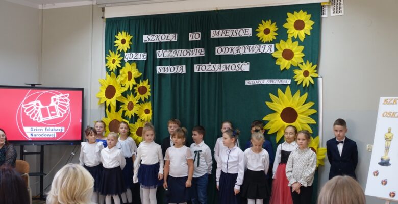 W minioną środę – 16 października uczniowie klas 2 i 3 z głębi serc wyrecytowali i wyśpiewali życzenia z okazji Dnia Edukacji Narodowej dla wszystkich pracowników naszej szkoły: dyrekcji, grona pedagogicznego, pracowników obsługi i administracji, rodziców oraz zaproszonych gości: emerytowanych nauczycieli, pracowników Zespołu Obsługi Edukacji i przedstawicieli gminy Nawojowa. ,,Słonecznikowy taniec”, w wykonaniu dziewczynek, był prezentem i miłą niespodzianką dla wszystkich gości.