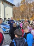 Policyjna przygoda najmłodszych! Dzisiejszy poranek klasy 1a, 1b, 1c i 2a spędziły w nawojowskim komisariacie policji. Dzieci miały okazję zobaczyć gabinety policjantów zajmujących się różnymi sprawami. Mogły też wsiąść do policyjnego radiowozu i posłuchać jego syren, a także odcisnąć własne linie papilarne na pamiątkowych dyplomach. Po tych atrakcjach uczniowie spotkali się również z przedstawicielką urzędu gminy, z którą rozmawiali m.in o oszczędzaniu energii i dbaniu o naszą małą ojczyznę – Nawojową. Cała akcja zorganizowana była przez Szkolny Klub Wiewiórka działający w naszej szkole. Jednym z jego zadań było przypomnienie zasad bezpiecznego poruszania się po drodze, szczególnie w okresie jesienno – zimowym – ODBLASKI!!!, bezpiecznego zachowania się na szkolnym parkingu oraz zapoznanie z pracą Policji i policyjnym sprzętem. Jutro dalszy ciąg programu, bo tym razem na Komisariat Policji wybiorą się uczniowie klasy 2b, 3a i 3b!