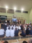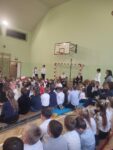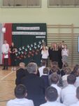 Kolejnym elementem tego spotkania było patriotyczne śpiewanie, do którego przygotowała uczniów klas 4-8 pani Ewelina Kleszcz oraz wychowawcy oddziałów 0-III. Tym samym dzieci zaśpiewały pieśni: ,,Pierwsza kadrowa”, ,,Szara Piechota”, ,,Pierwsza Brygada (Legiony)”. Zebrani mieli doskonałą okazję, by drzemiącą w ich sercach i duszach energię przełożyć na śpiew patriotycznych piosenek. Uroczystość zakończyło wystąpienie pana Dyrektora Pawła Bodzionego, który podkreślił wagę dzisiejszego Święta i podziękował wszystkim, którzy przygotowali akademię, wyrażając przy tym uznanie dla patriotycznej postawy całej naszej szkoły.
