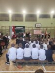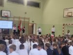 Na koniec dnia przedstawiciele Samorządu Uczniowskiego wraz z uczniami klas 7 i 8, chcąc podkreślić swój patriotyzm, zjednoczyli się, aby stworzyć wyjątkowy symbol miłości do Ojczyzny. W sześciu równych rzędach, trzymając białe i czerwone kartki, ułożyli się w żywą flagę Polski – wyraz naszej dumy, jedności i przywiązania do polskich tradycji. To piękne wspólne przedsięwzięcie przypomina nam o sile patriotyzmu i znaczeniu narodowych barw!