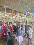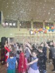 W minioną środę najmłodsza społeczność naszej szkoły bawiła się na sali gimnastycznej, udekorowanej na tę okazję przez Samorząd Uczniowski i jednego z opiekunów – panią Monikę Kłap. Dzieci prezentowały przepiękne stroje, wiele przypominało postaci z bajek, ale też nie zabrakło kreacji dziewczynek ozdobionych cekinami, kokardami i błyskotkami. Pląsy taneczne umilał wszystkim DJ, który angażując dzieci we wspólne zabawy, wpływał tym samym pozytywnie na budowanie relacji między rówieśnikami i integrację zespołów klasowych. Najlepszymi atrakcjami, poza ulubioną muzyką uczniów, były puszczane dymy, bańki mydlane, sztuczny śnieg, sombrera i chodzący Pan Miś, który przewodził we wszystkich wspólnych zabawach. Po balu każda z klas wróciła do sali na wspaniały poczęstunek przygotowany przez rodziców, a to z kolei było doskonałą okazją do nauki zasad kulturalnego zachowania się przy stole. Następnie uczniowie kontynuowali świętowanie, grając i bawiąc się w swoich salach. Były też wróżby w klasach zorganizowane przez wychowawczynie jak i Samorząd Uczniowski. Radości i uśmiechu było co niemiara. Wszyscy uczniowie chórem ogłosili, że z utęsknieniem czekają już na następny andrzejkowy bal!