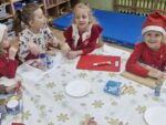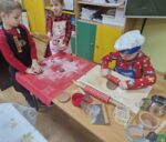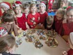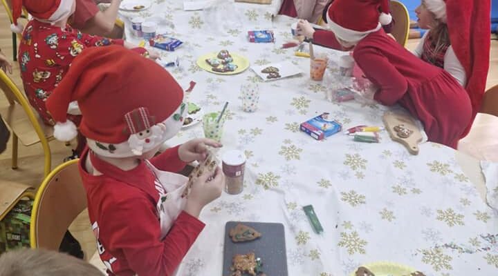 Wczoraj oddział 0b miał niezwykłego gościa! Pani Ewa, mama Frania, która jest zawodowym cukiernikiem, odwiedziła naszych zerówkowiczów. Wprowadziła dzieci w tajniki pieczenia pysznych pierniczków, ale również podzieliła się swoją ogromną wiedzą i udzieliła wielu cennych rad. Dzięki jej wsparciu i doświadczeniu, pieczenie stało się prawdziwą świąteczną przygodą pełną zapachów, smaków i uśmiechów! Nasze przedszkolaki z wielkim zaangażowaniem i radością wałkowały ciasto, wycinały różnorodne kształty i dekorowały pierniczki kolorowymi lukrami i posypkami.