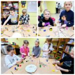 Świetliczaki przepadają za zajęciami plastycznymi i raczej nie trzeba ich długo namawiać do robienia wspaniałych prac. Tworzenie wielu kreatywnych kompozycji wymaga precyzyjnych ruchów dłoni i stanowi wspaniałe ćwiczenie, a tym samym jest świetnym wstępem do nauki pisania. Wielkimi krokami zbliżają się święta Bożego Narodzenia, dlatego w minionym tygodniu dzieci przygotowywały ozdoby choinkowe takie jak: papierowe gwiazdki, bombki i aniołki. Na koniec zostawiliśmy zagniatanie ciasta z masy solnej. Następnie wycinaliśmy pierniki, które dzieci pięknie udekorowały. Wszystkie ozdoby będą wisieć na choince i upiększą naszą świetlicową salę.