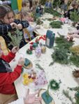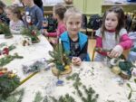 Maluchy pełne zapału i entuzjazmu przystąpiły do pracy, zamieniając swoje pomysły w prawdziwe dzieła sztuki. Przy użyciu kolorowych wstążek, bibuły, gałązek i wielu innych materiałów, powstały stroiki, które nie tylko ozdobią ich salę, ale również przyciągają uwagę swoją oryginalnością i urokiem.
