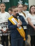 Uroczystość uświetnił program artystyczny, który zaprezentowali uczniowie klas IV a, IV b i V b. Podczas przedstawienia poznaliśmy dwanaście miesięcy, cztery pory roku i ich niezwykłe dary, które ofiaruje nam kolejny 2025 rok. Na zakończenie występu uczniowie przekazali zgromadzonym noworoczne życzenia.