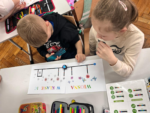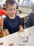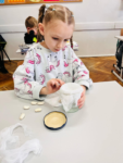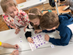 21 marca rozpoczyna się kalendarzowa wiosna. Po chłodzie, mrozie, długich, szarych i ponurych dniach w końcu możemy cieszyć się pierwszymi zwiastunami długo wyczekiwanej przez każdego wiosny. Krzewy, drzewa, rośliny ponownie rozkwitają, ptaki wracają z ciepłych krajów, a zwierzęta budzą się z zimowego snu. To wyjątkowy czas na podziwianie i odkrywanie niesamowitej przyrody, która budzi się do życia. Korzystając z przepięknej pogody uczniowie klasy 1 C wzięli udział w klasowych wiosennych podchodach. Dzieci były podzielone na dwie grupy, których zadaniem było znalezienie karteczek z różnego rodzaju ćwiczeniami o tematyce wiosennej i poprawne ich rozwiązanie. Uczniowie dzięki sprawnemu, grupowemu działaniu błyskawicznie odnajdywali i rozwiązywali wszystkie polecenia. Zabawa była znakomita. Po zakończonych podchodach cała klasa poszukiwała na terenie szkoły pierwszych zwiastunów wiosny. Pierwszoklasiści również w ostatnich dniach wykonywali różnorodne zadania o tematyce wiosennej m. in. na zajęciach z kodowania uczniowie kodowali trasy robotami OZOBOTAMI, wypełniali dyktanda graficzne na matach do kodowania, rozwiązywali wiosenne zadania oraz pracowali w programie Genially. Natomiast na zajęciach przyrodniczych posadzili własną hodowlę grochu i przez najbliższe dni będą prowadzić obserwację jego rozwoju. Na lekcjach muzyki własnoręcznie tworzyli instrumenty muzyczne i w rytm wiosennych piosenek ochoczo śpiewali i grali z dużą dozą radości. Nie zabrakło również kolorowych, pięknych prac plastycznych, które ożywiają i upiększają naszą klasę. Dzieci przyłączyły się także do akcji Samorządu Uczniowskiego i w dzień rozpoczynającej się kalendarzowej wiosny przyszli ubrani na zielono oraz mieli kolorowe skarpetki z racji przypadającego w tym samym czasie „Świętego Dnia Zespołu Downa” na znak solidarności z tymi osobami.