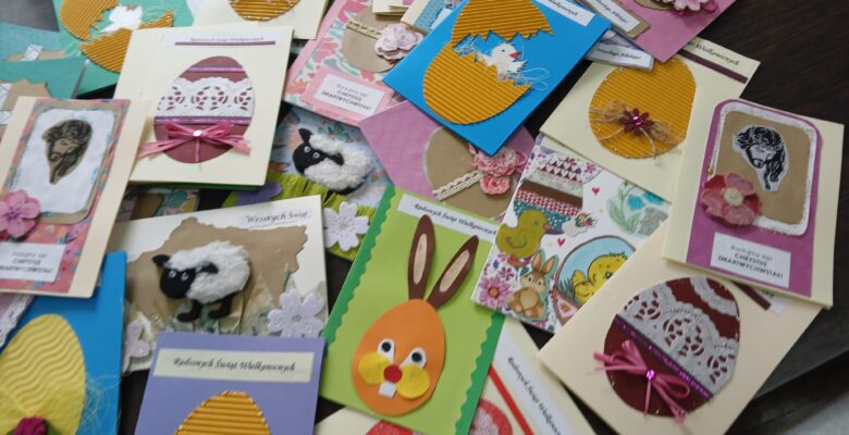 Wolontariuszki w marcu przygotowały 64 kartki świąteczne dla Nawojowskiego Centrum Wolontariatu. Kartki te zostaną przekazane osobom samotnym i starszym przed Świętami Wielkanocnymi.