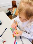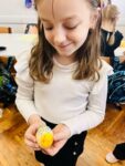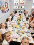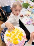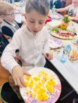 . W klasie natomiast uczniowie malowali pisanki, uczyli się składać serwetki, pomagali przy nakryciu stołu, a następnie, po przeczytaniu fragmentu z Pisma Świętego, krótkiej modlitwie i wspólnych życzeniach, przeszli do śniadania wielkanocnego.