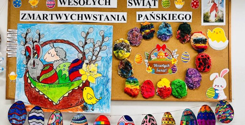 . W klasie natomiast uczniowie malowali pisanki, uczyli się składać serwetki, pomagali przy nakryciu stołu, a następnie, po przeczytaniu fragmentu z Pisma Świętego, krótkiej modlitwie i wspólnych życzeniach, przeszli do śniadania wielkanocnego.