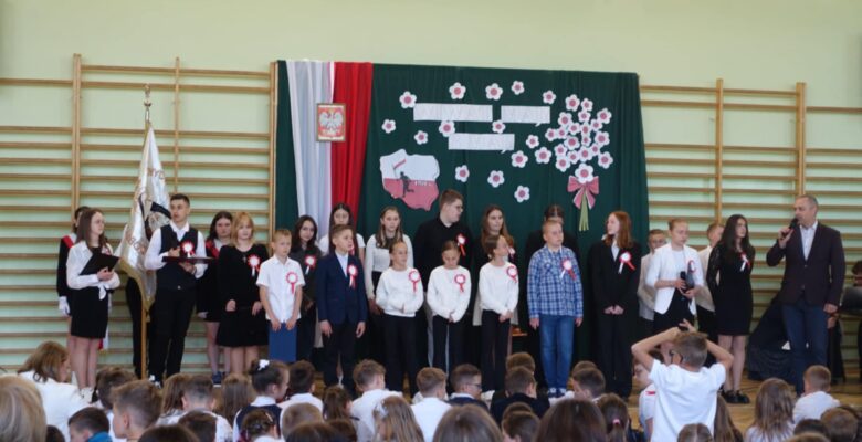 W związku z rocznicą uchwalenia Konstytucji 3 Maja uczniowie klas 7a i 5b, pod opieką pani Agnieszki Kiercz i pani Małgorzaty Stopki, przygotowali uroczystą akademię. Przy oprawie muzycznej pomagała pani Ewelina Kleszcz. Występujący zapoznali całą społeczność szkolną, zgromadzoną na sali gimnastycznej, z ważnymi wydarzeniami, które miały miejsce 234 lata temu. Ponadto recytowali wzruszające wiersze i dumnie śpiewali pieśni patriotyczne. Na szczególną uwagę zasługuje utwór pt. ,,Żeby Polska” w wykonaniu uczennicy klasy 7a, Martyny Sochaj. Akademię zakończyła wspólnie odśpiewana Rota, po której pan dyrektor podziękował wszystkim zaangażowanym za przypomnienie nam tak ważnej części naszej polskiej historii.![]()