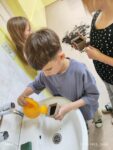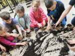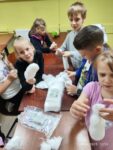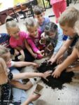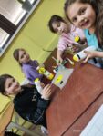 Z okazji Światowego Dnia Pszczół dzieci z zapałem tworzyły urocze pszczółki ze skarpetek i miękkiej waty, rozwijając swoje zdolności manualne i wyobraźnię. Następnie wspólnie sadzili nasiona łąki kwietnej w biodegradowalnych doniczkach, ucząc się, jak ważne są rośliny dla życia pszczół i całego ekosystemu. Te ekologiczne pojemniki dzieci zabrały do domów, aby posadzić je w przydomowych ogródkach, kontynuując troskę o przyrodę. Na zakończenie dnia, przy pomocy pana konserwatora, zawiesiliśmy domek dla owadów na pobliskim drzewie, tworząc bezpieczne schronienie dla naszych małych przyjaciół. Dotykanie ziemi, sadzenie roślin i obserwowanie przyrody sprawiło dzieciom ogromną radość, pozwalając im poczuć bliskość z naturą!