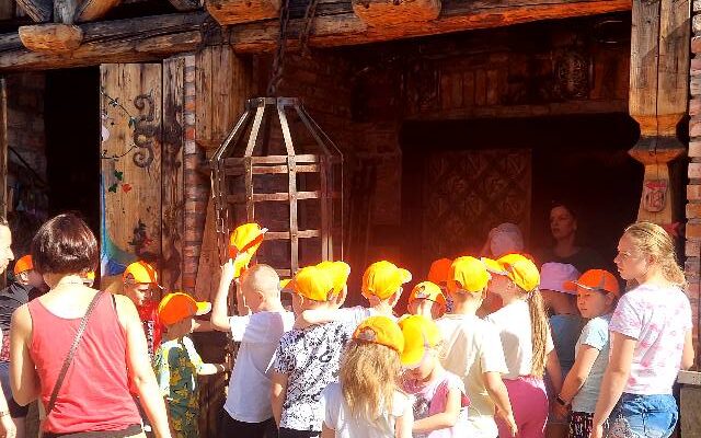 Zwiedzanie zamku odbywało się w wyjątkowy sposób, pod opieką animatora, który oprowadził dzieci po ustalonej trasie, wciągając ich w pełne humoru i fantazji opowieści. Podczas wyprawy mali podróżnicy: