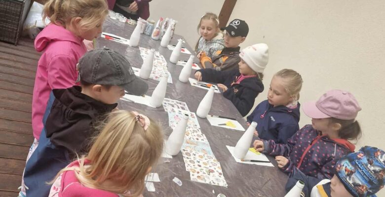 Nie zabrakło również zabawy i twórczego działania – warsztaty kreatywne były prawdziwą atrakcją! Mali uczestnicy mogli wykonać własne flakoniki, które z dumą zabrali do domu. Na koniec dzieci zrobiły domek dla owadów, który wzięły ze sobą do szkoły. A na wiosnę, przy pomocy osób dorosłych, być może umieszczą go nieopodal szkoły….