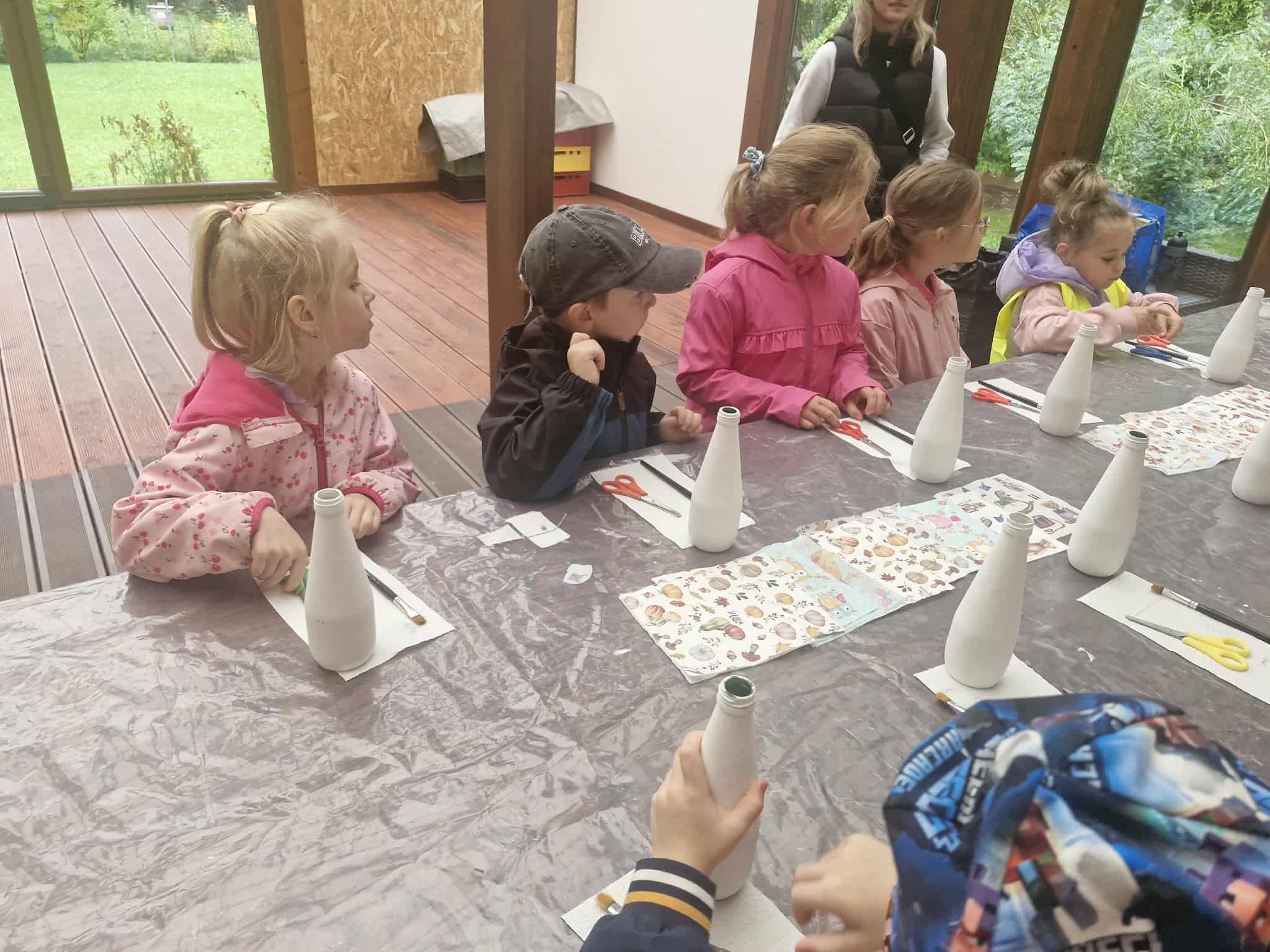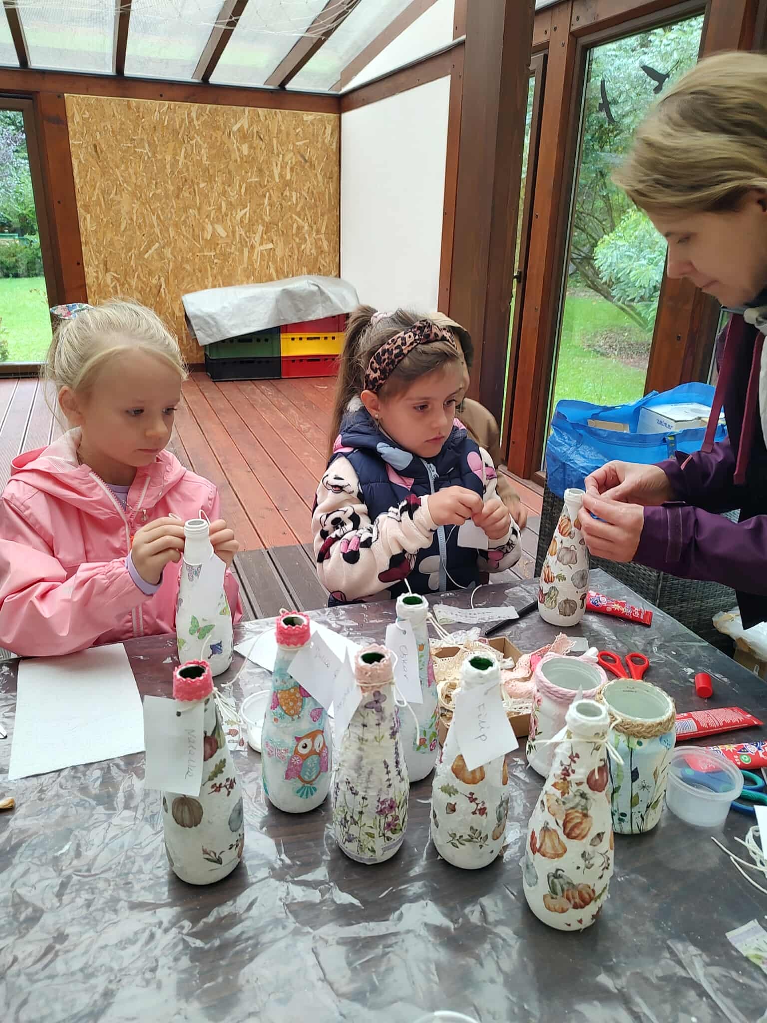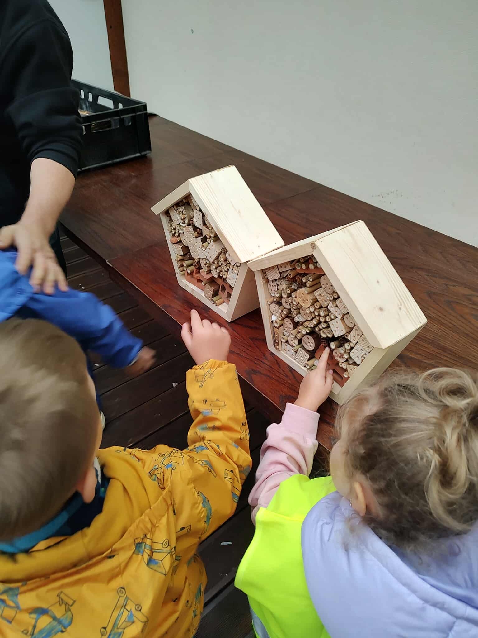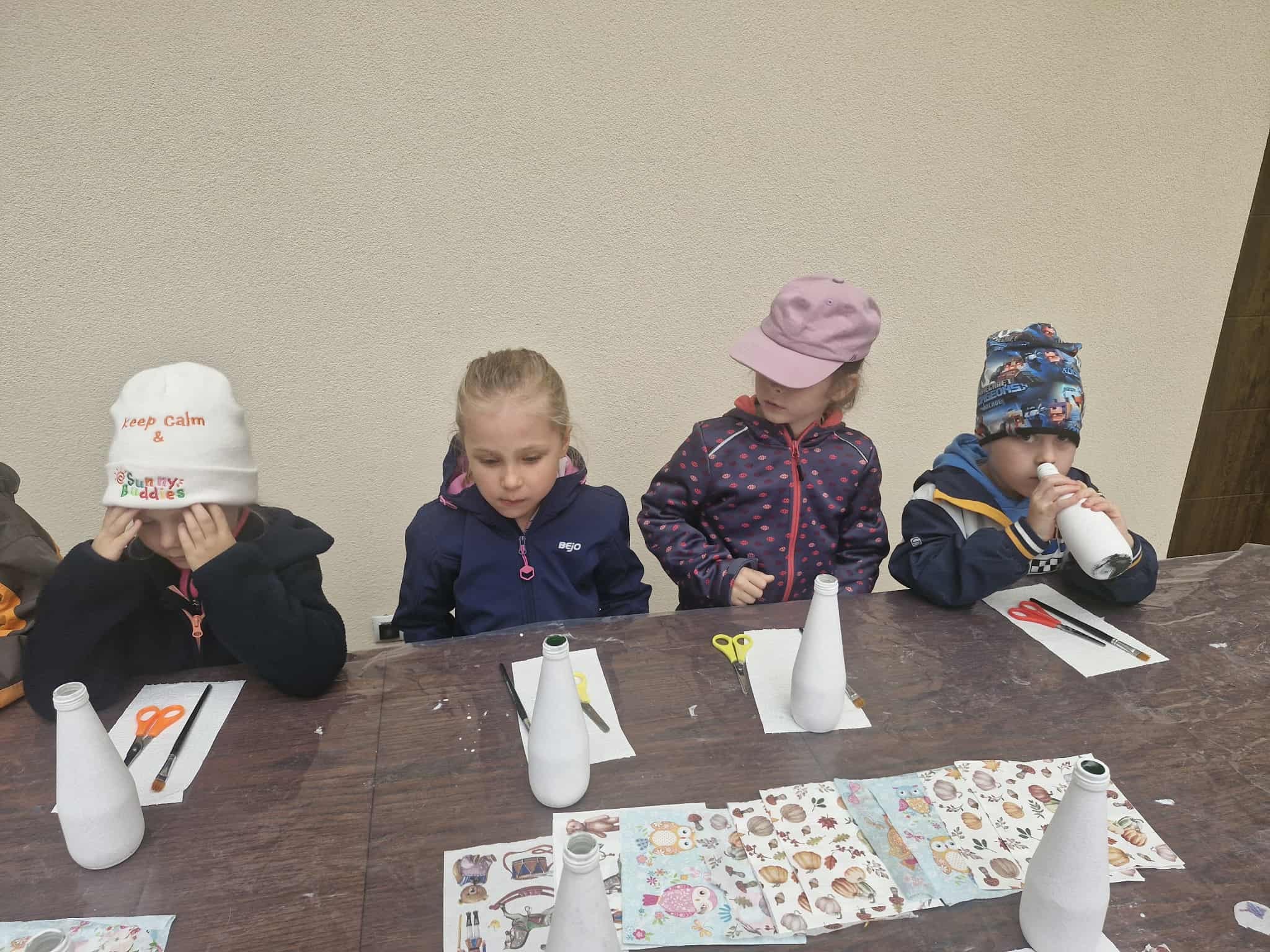 Nie zabrakło również zabawy i twórczego działania – warsztaty kreatywne były prawdziwą atrakcją! Mali uczestnicy mogli wykonać własne flakoniki, które z dumą zabrali do domu. Na koniec dzieci zrobiły domek dla owadów, który wzięły ze sobą do szkoły. A na wiosnę, przy pomocy osób dorosłych, być może umieszczą go nieopodal szkoły…. 😉