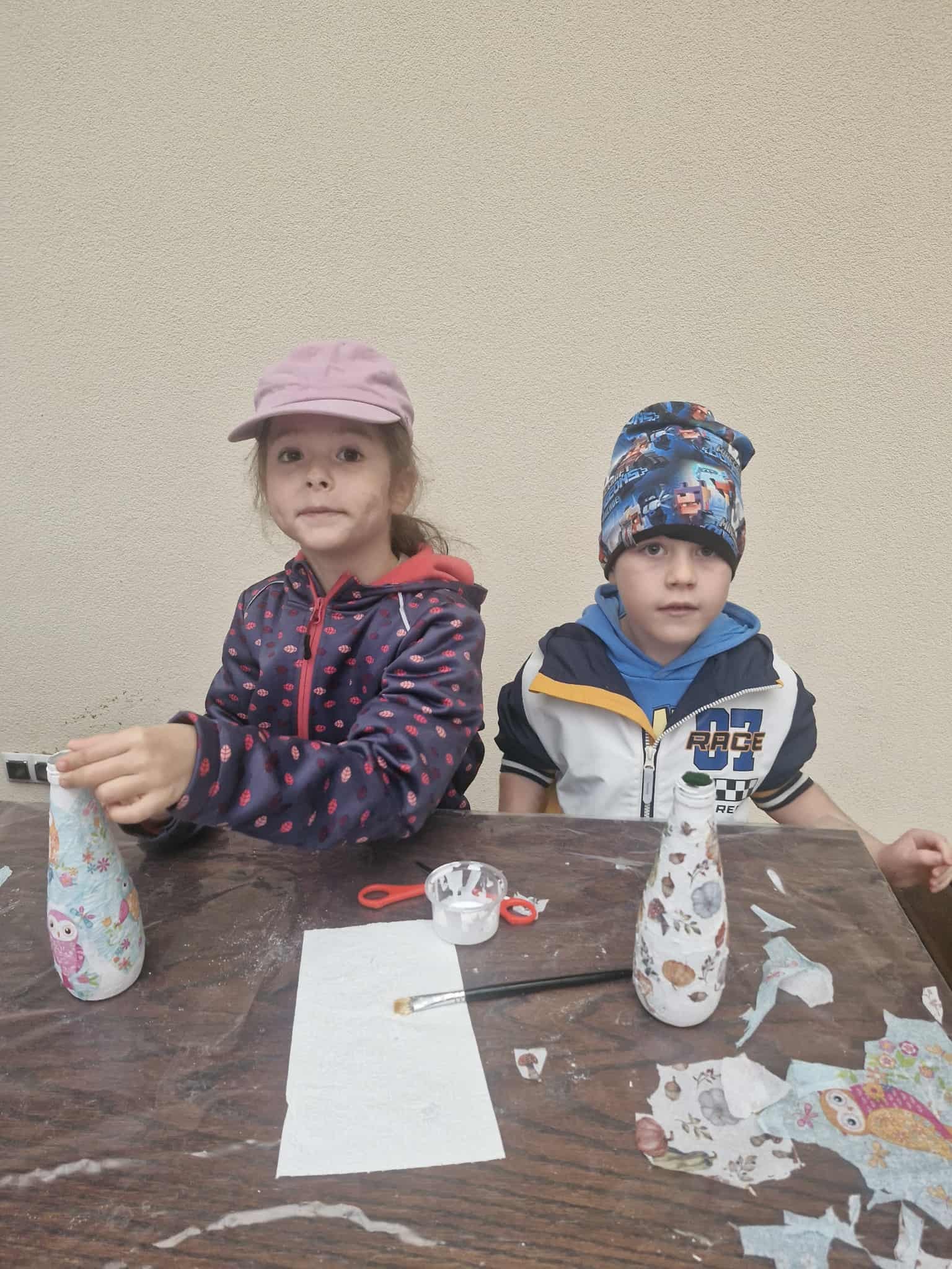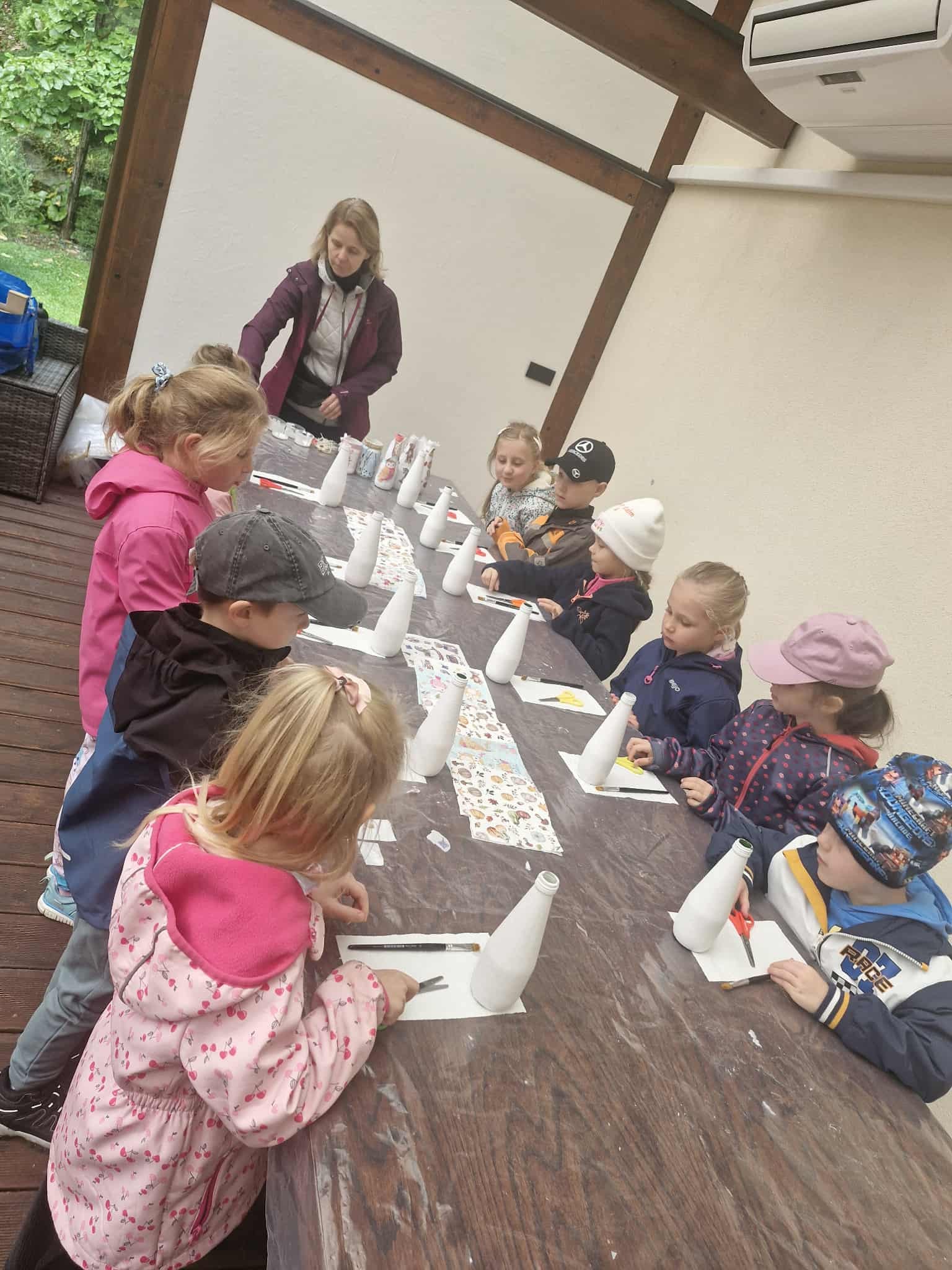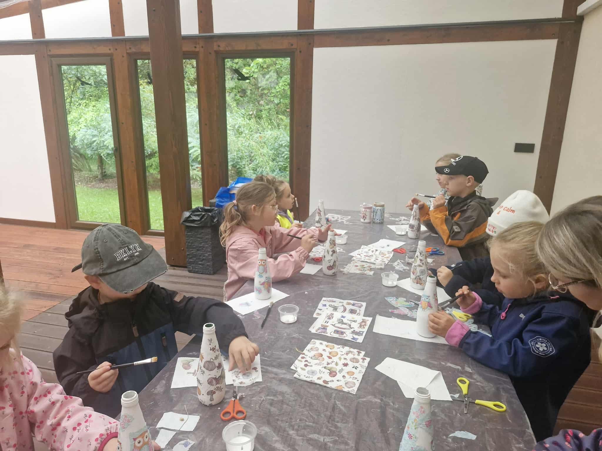 Nie zabrakło również zabawy i twórczego działania – warsztaty kreatywne były prawdziwą atrakcją! Mali uczestnicy mogli wykonać własne flakoniki, które z dumą zabrali do domu. Na koniec dzieci zrobiły domek dla owadów, który wzięły ze sobą do szkoły. A na wiosnę, przy pomocy osób dorosłych, być może umieszczą go nieopodal szkoły…. 😉