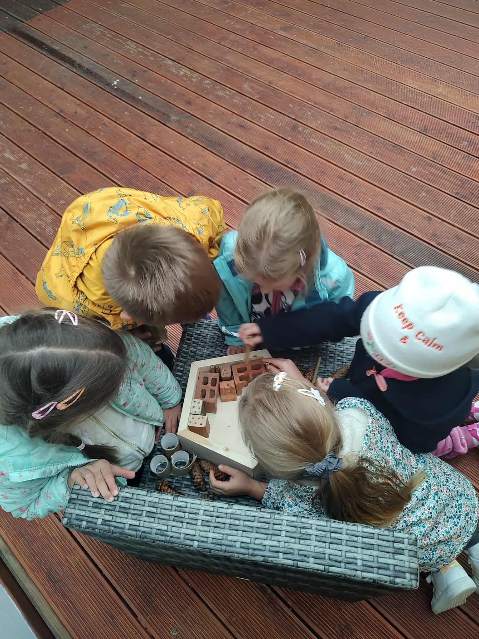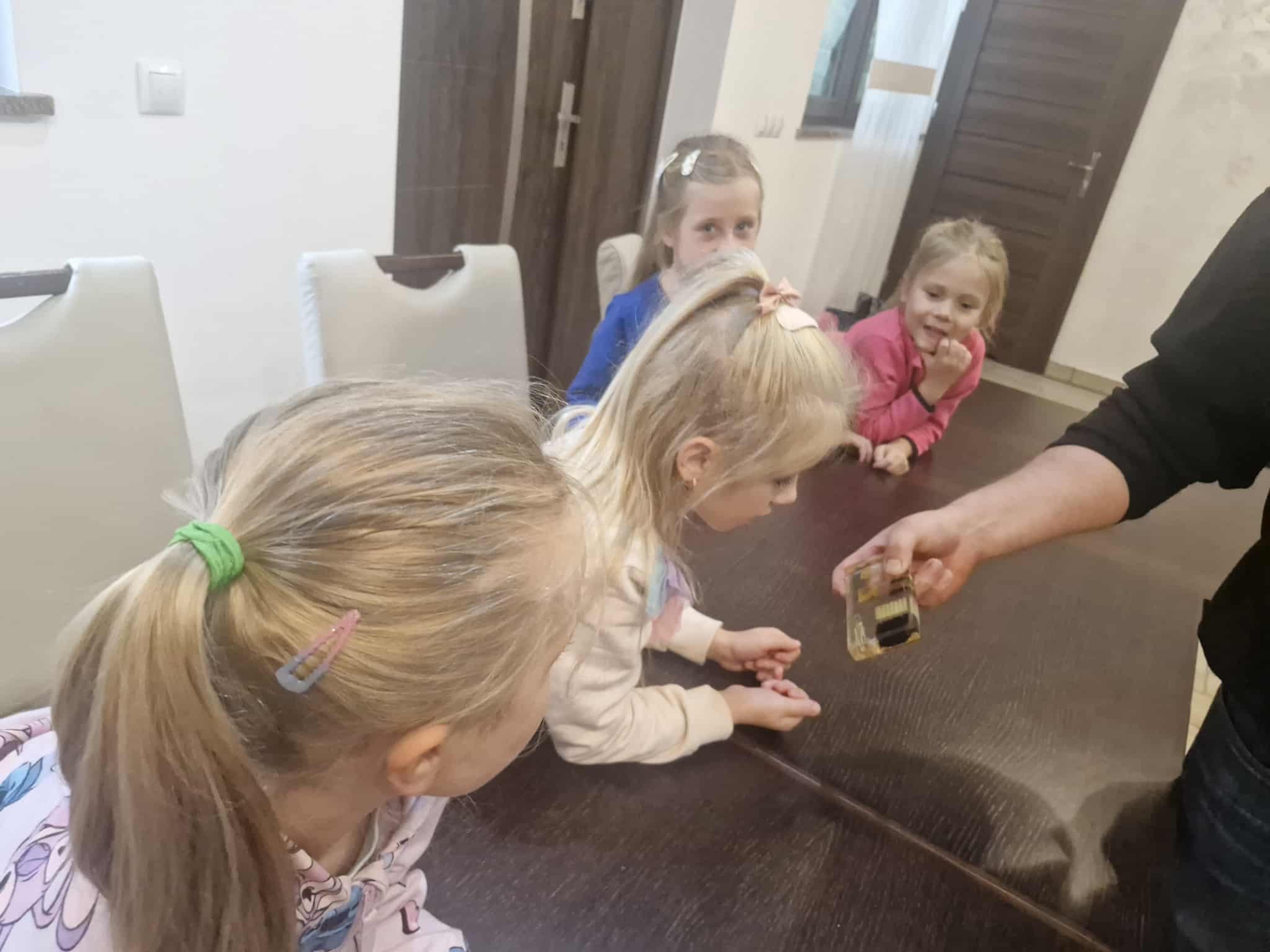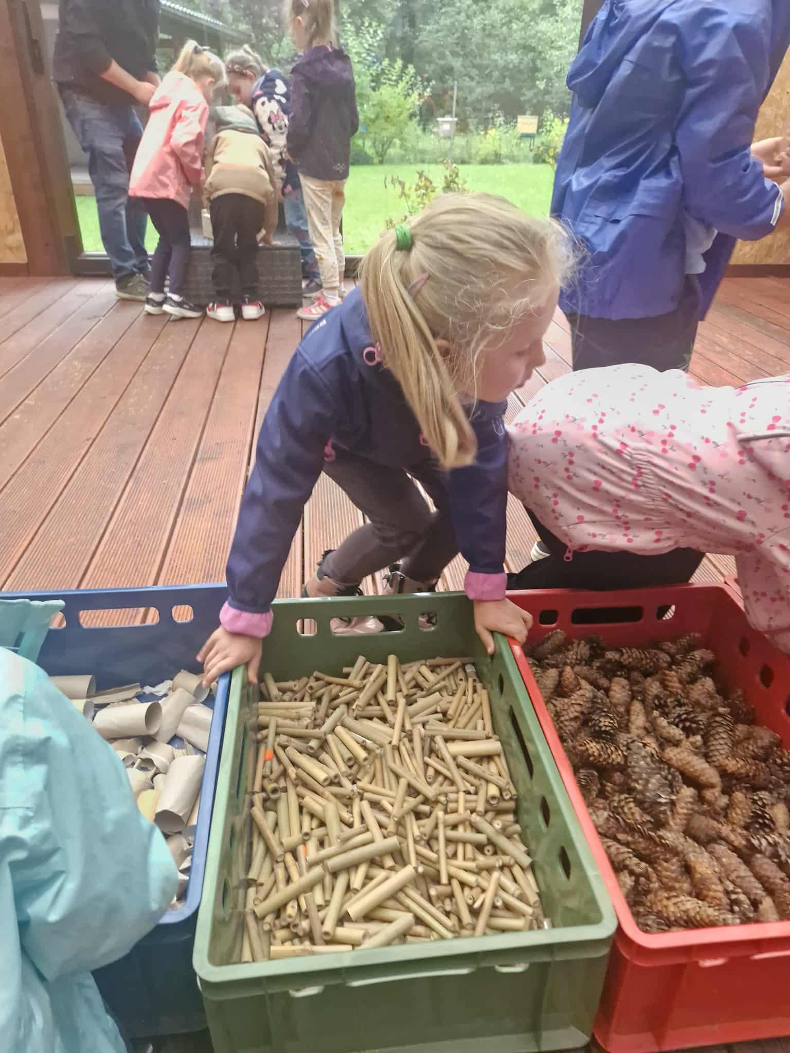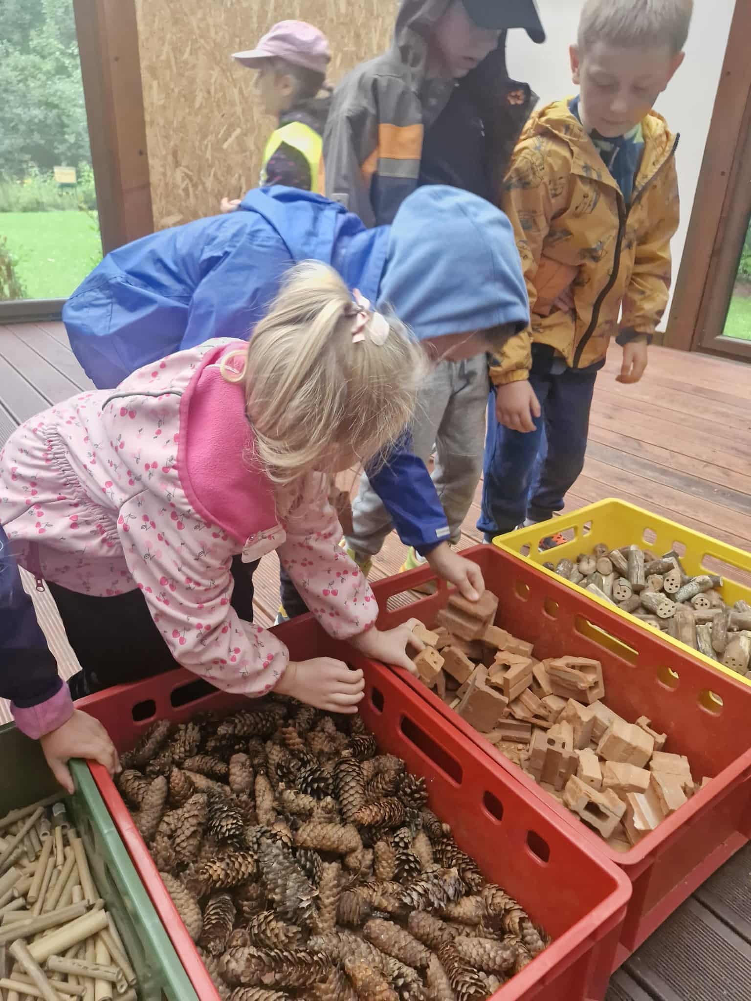Nie zabrakło również zabawy i twórczego działania – warsztaty kreatywne były prawdziwą atrakcją! Mali uczestnicy mogli wykonać własne flakoniki, które z dumą zabrali do domu. Na koniec dzieci zrobiły domek dla owadów, który wzięły ze sobą do szkoły. A na wiosnę, przy pomocy osób dorosłych, być może umieszczą go nieopodal szkoły…. 😉