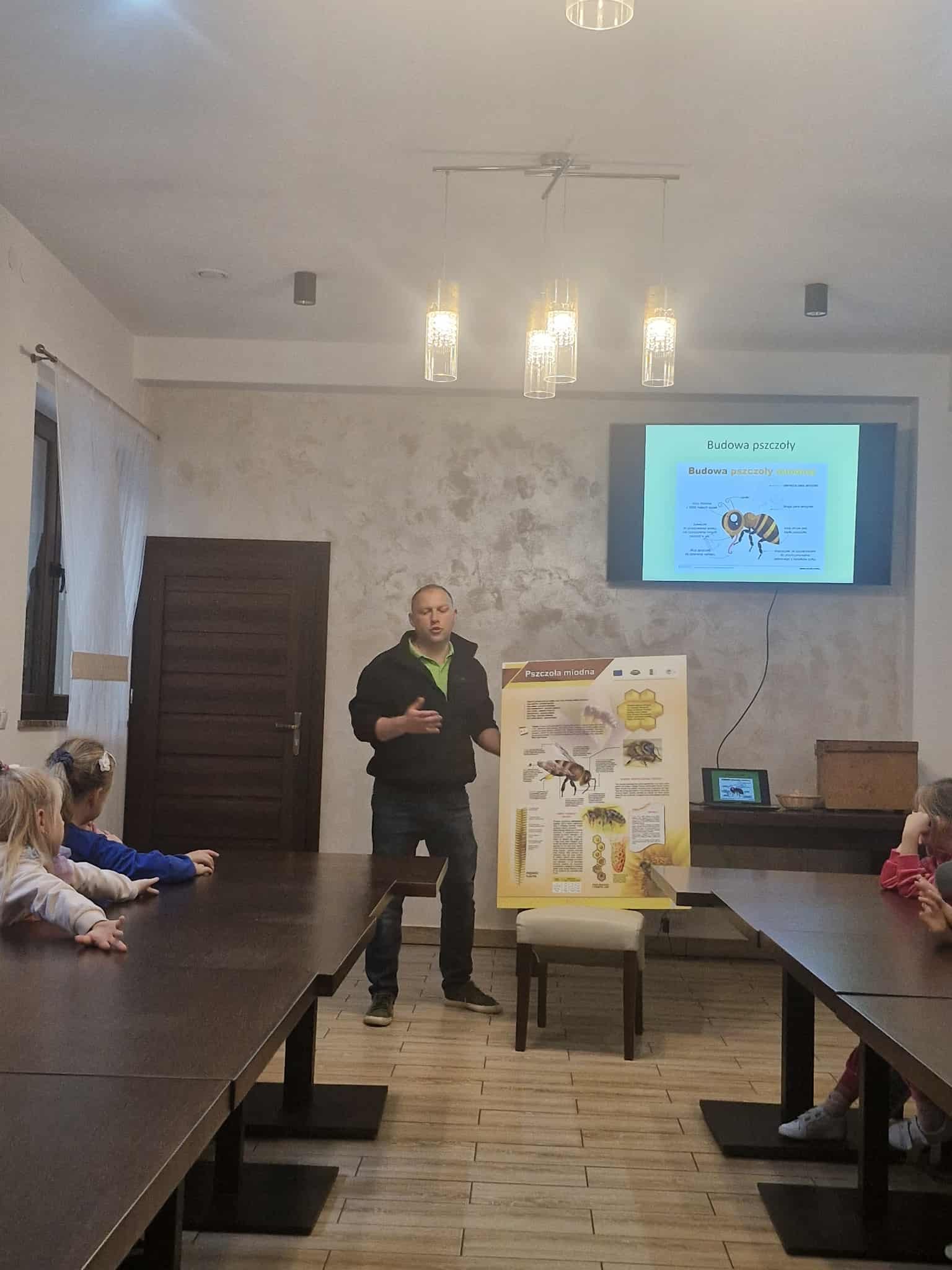 🐝Mimo niesprzyjającej pogody, środowa wycieczka do pasieki okazała się niezwykle udana. Dzieci miały okazję dowiedzieć się wielu ciekawych rzeczy o życiu pszczół, pracy pszczelarza oraz znaczeniu pszczół dla środowiska. Z ogromnym zainteresowaniem słuchały opowieści, zadawały pytania i chętnie uczestniczyły w zajęciach.