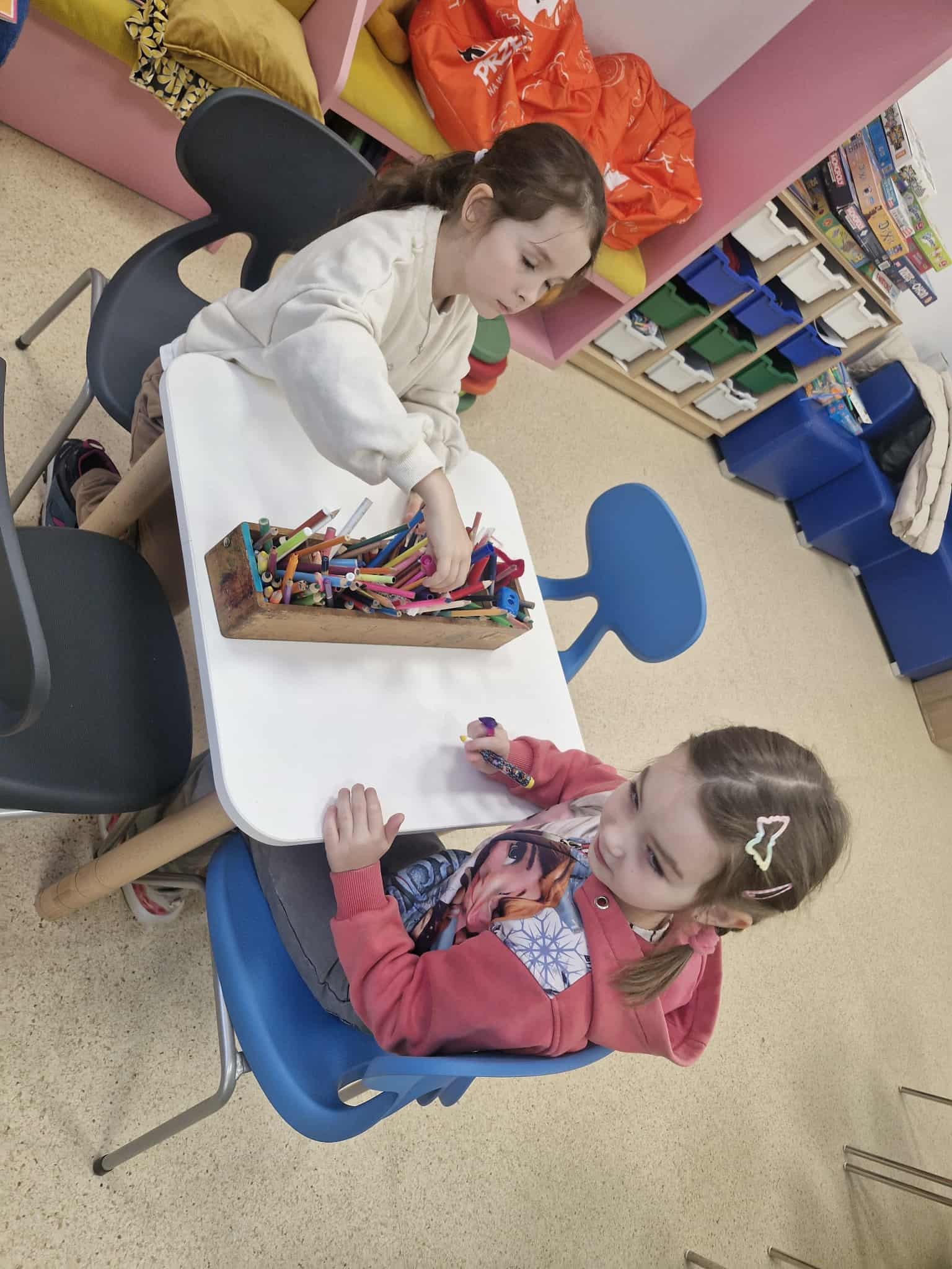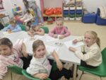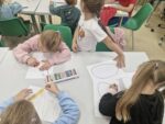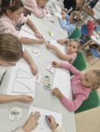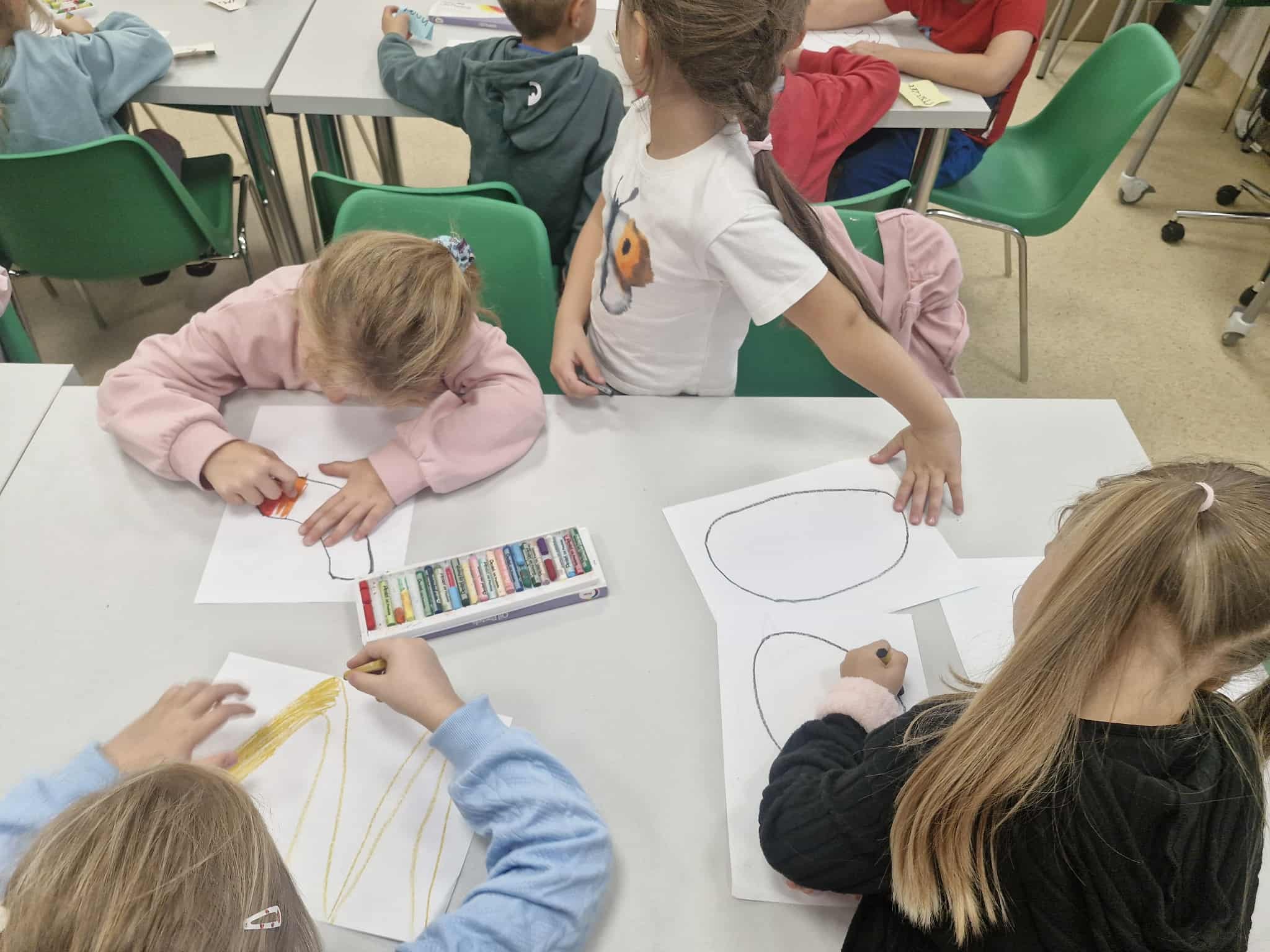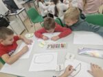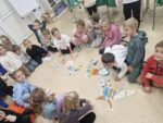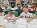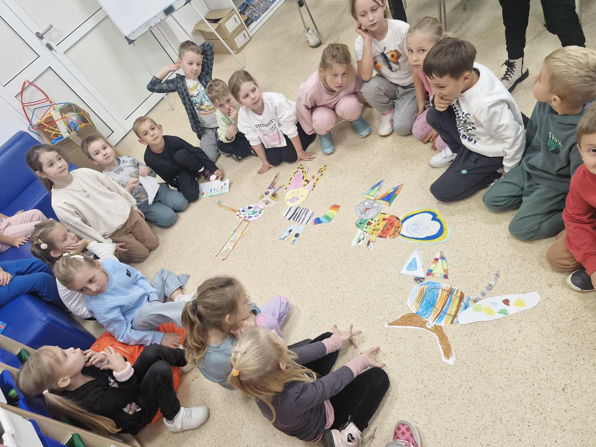 Dzisiaj dzieci z oddziału 0b odwiedziły nawojowską bibliotekę. Miały okazję ją zwiedzić oraz zapoznać się z księgozbiorem. Dowiedziały się, jak można wypożyczać książki, a także jak należy o nie dbać. Następnie wzięły udział w ciekawych zajęciach przygotowanych przez panią bibliotekarkę. Wysłuchały opowiadania pt. ,,Kotki Dorotki”, a później wspólnie stworzyły własne koty — nie były to jednak zwykłe prace plastyczne! Aby powstał jeden kot, musiało ze sobą współpracować kilkoro dzieci. Zadanie wymagało dobrej komunikacji, podziału ról i wzajemnej pomocy. To była doskonała okazja do rozwijania kreatywności, umiejętności współpracy oraz poznania fascynującego świata książek. Dzieci wróciły do szkoły zadowolone i pełne wrażeń.