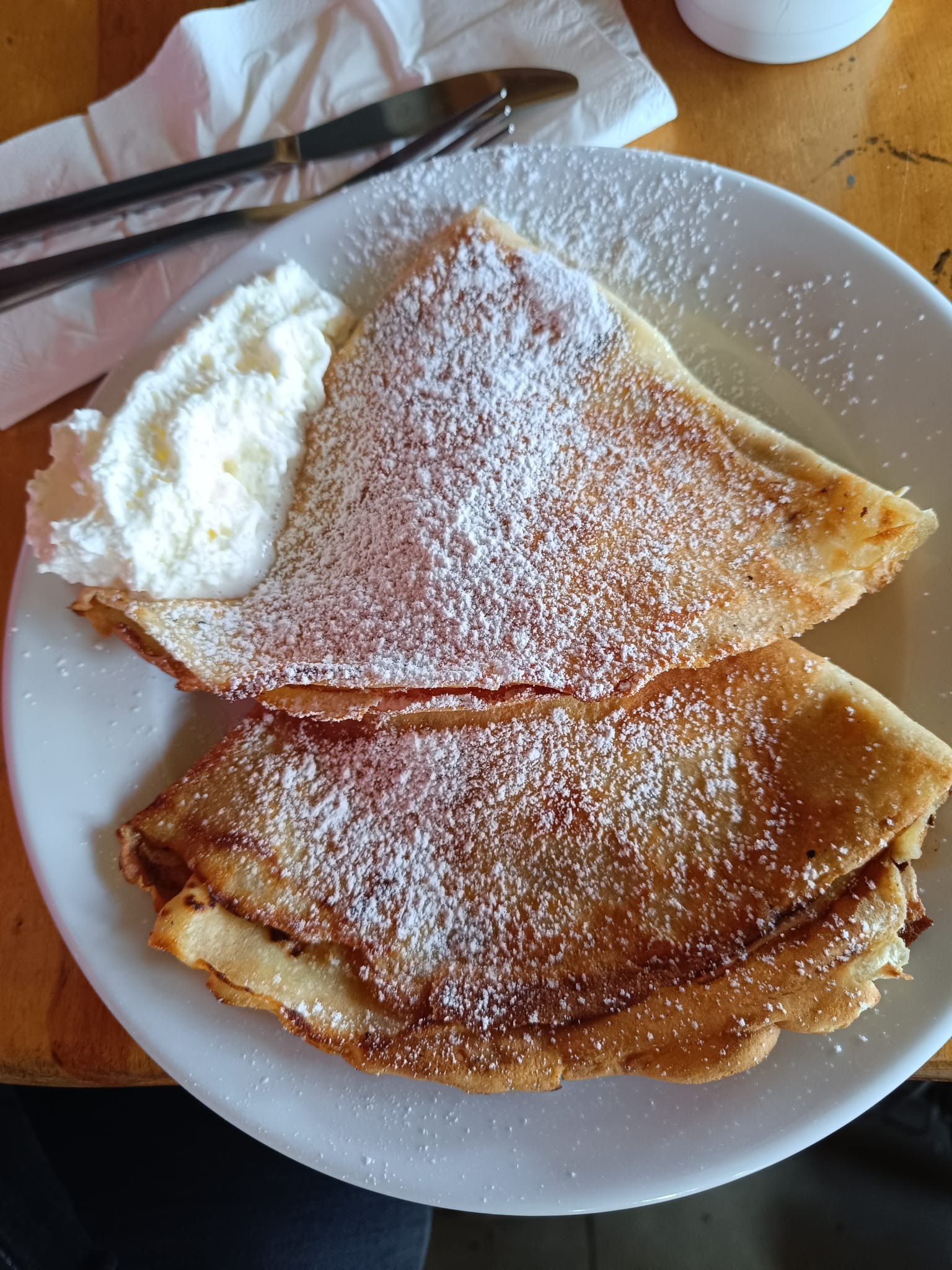 W schronisku czekała za to słodka nagroda – naleśniki z bitą śmietaną i pierogi z jagodami.