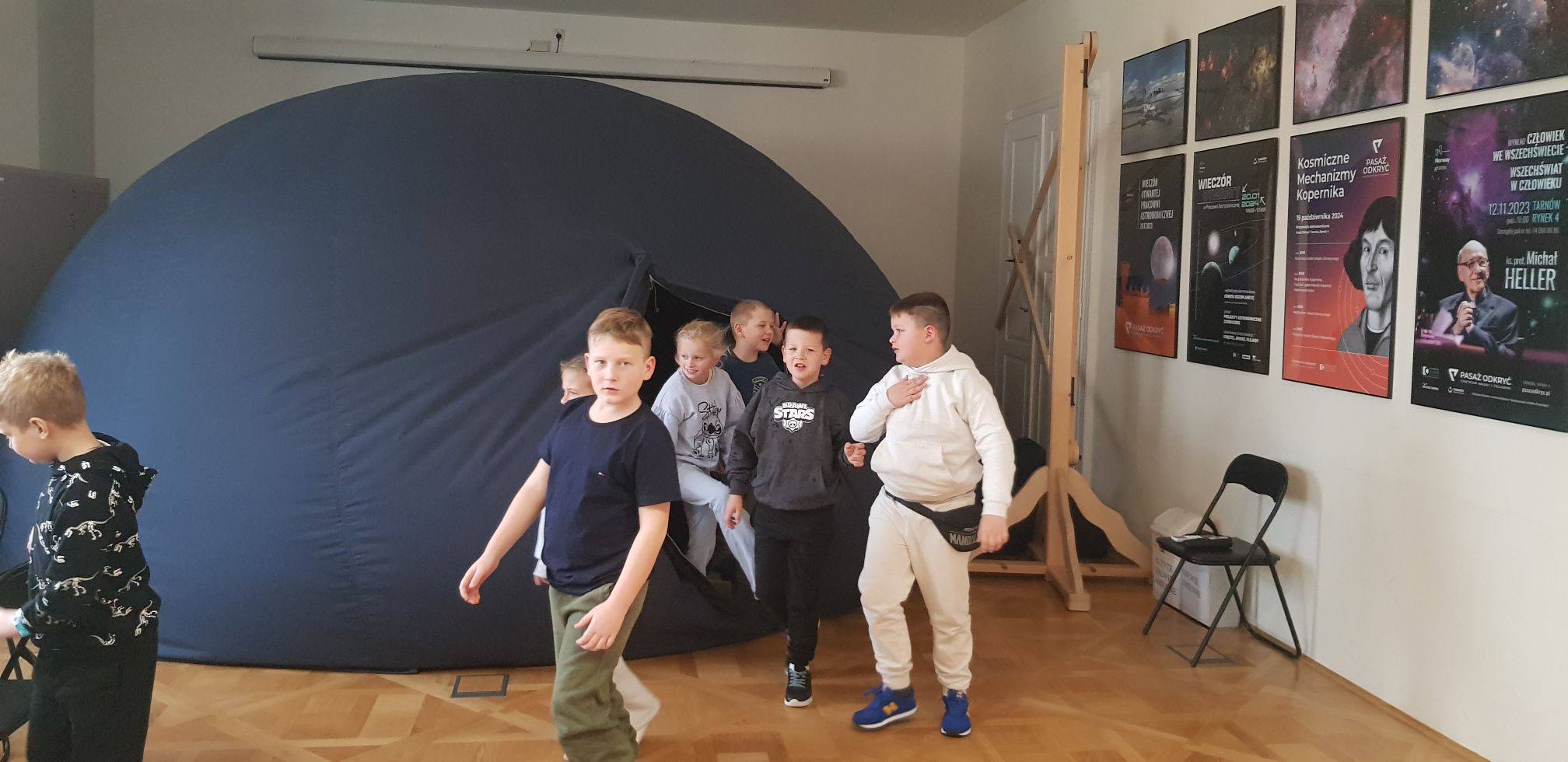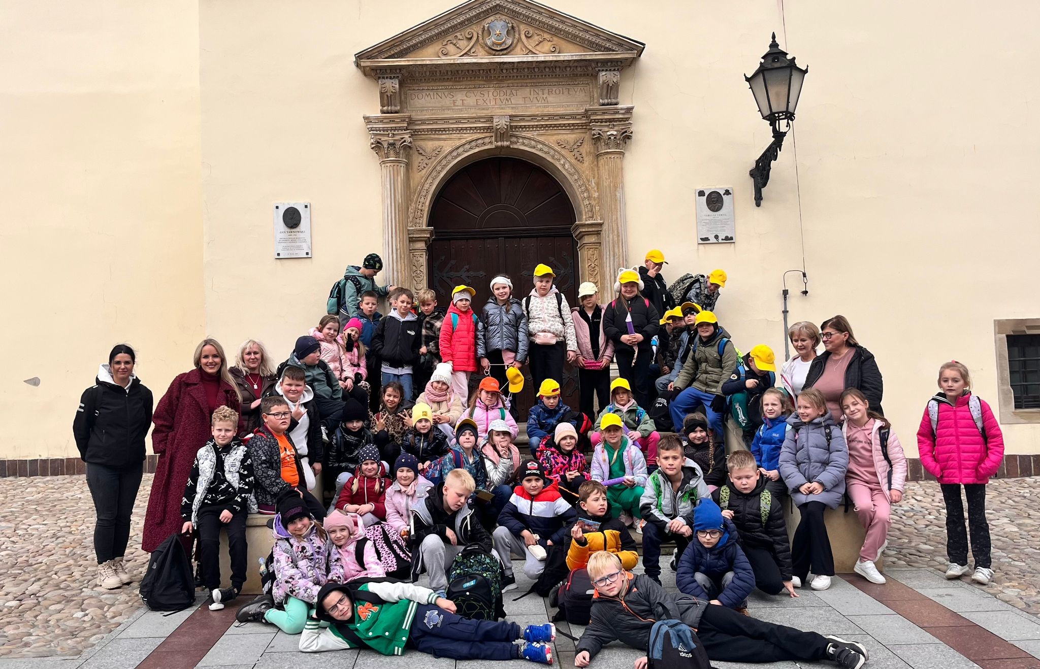 22 października klasy drugie wybrały się na wycieczkę do Tarnowa. Pierwszym punktem wyjazdu był krótki spacer po malowniczym rynku. Jedną z ciekawych atrakcji było szukanie przez uczniów tarnowskich Maszkaronów czyli ozdobnych, groteskowych figur, które są rozsiane po całym Tarnowie. Poszczególne maszkarony mają swoje imiona i symbolikę, nawiązując do różnych aspektów historii i kultury miasta. Następnie drugoklasiści udali się do Pasażu Odkryć, gdzie już przy wejściu powitał ich przewodnik, który opowiadał o tym wyjątkowym miejscu, łączącym historię i naukę. Pasaż Odkryć to miejsce, gdzie czas nabiera znaczenia, a jednostka ludzka ma wpływ na wiele aspektów. W nowym centrum nauki i techniki zgromadzone są informacje dotyczące kluczowych odkryć, wynalazków oraz ich twórców. Uwaga odwiedzających jest skupiona na wybitnych naukowcach związanych z Tarnowem oraz istotnych historycznych odkryciach – zarówno tych, które już są znane, jak i tych, które obecnie dokonują się gdzieś poza naszym horyzontem. Podczas zwiedzania uczniowie mogli korzystać z wielu interaktywnych stanowisk, które pozwalały samodzielnie wykonywać różne doświadczenia. Dzieci poznały wynalazki Jana Szczepanika – zwanego polskim Edisonem – między innymi kamizelkę kuloodporną oraz urządzenia do barwienia zdjęć i filmów. Dużą atrakcją były zajęcia w symulatorze, dzięki któremu uczniowie poczuli się jak prawdziwi konstruktorzy nowych technologii. Dzięki temu mieli możliwość eksperymentować, doświadczać, programować i przemieniać się w chemików i astronautów w specjalistycznych pracowniach naukowych. Zwieńczeniem tych wspaniałych eksploracji były warsztaty, podczas których dzieci mogły stworzyć własne wynalazki. Każdy wrócił z pamiątką oraz wieloma ciekawostkami w głowie. W drodze powrotnej zatrzymali się w restauracji Mc Donald’s, co jeszcze bardziej uatrakcyjniło koniec podróży!