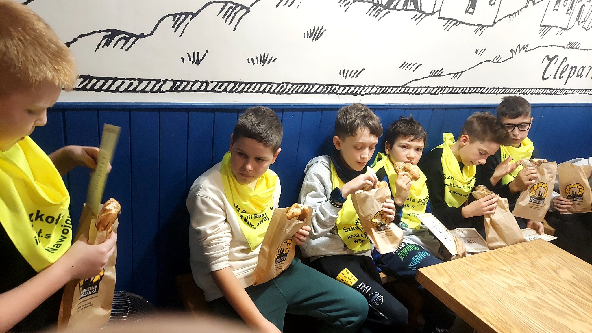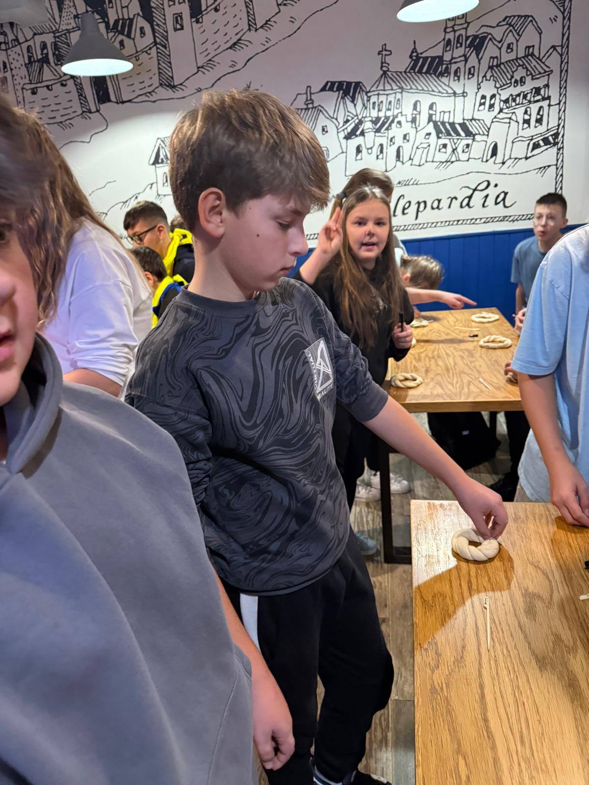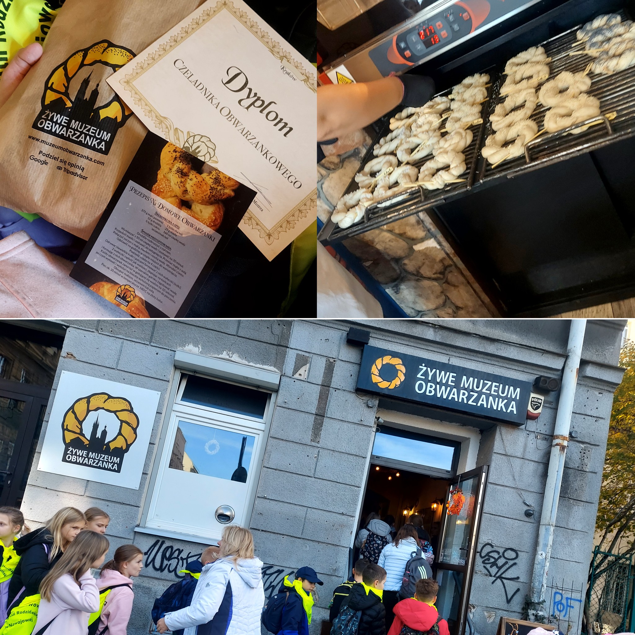 Pierwszym punktem programu było Muzeum Obwarzanka, gdzie nasi uczniowie poznali historię tego krakowskiego przysmaku i własnoręcznie przygotowali swoje obwarzankowe arcydzieła. Było pachnąco, smacznie i bardzo twórczo. Następnie dzieci wzięły udział w warsztatach teatralnych w Teatrze Groteska, gdzie odkrywały tajemnice świata masek i lalek teatralnych oraz poznały pracę wszystkich osób potrzebnych do wystawienia sztuki na scenie. Na zakończenie dnia odbył się spacer szlakiem krakowskich legend z panią przewodniczką, która w barwny sposób opowiadała o tajemniczych zakamarkach dawnego Krakowa. A na koniec trasy dzieci zjadły obiecany posiłek w McDonald’s, który był pyszną kropką nad „i” tej wyjątkowej wycieczki.