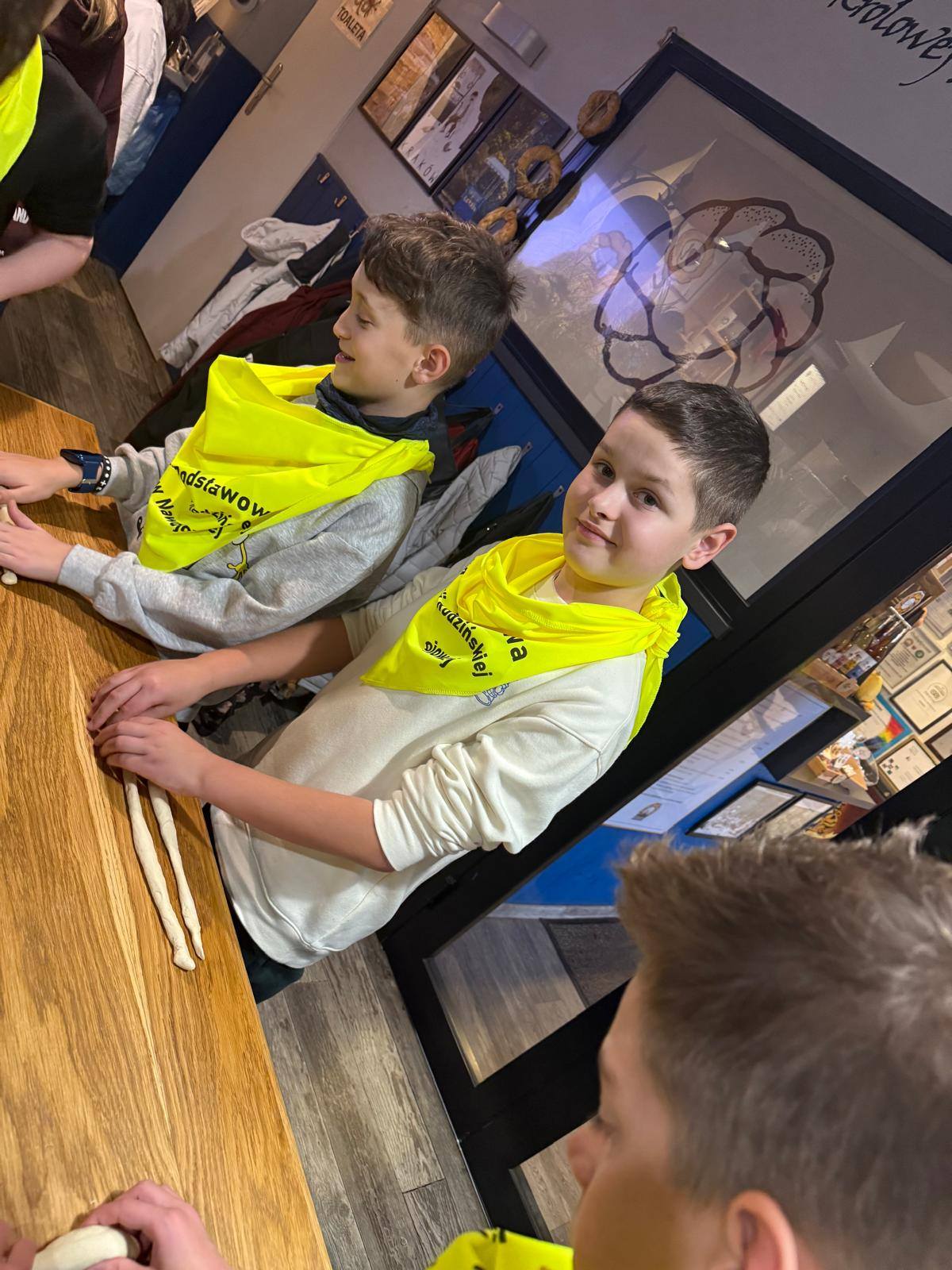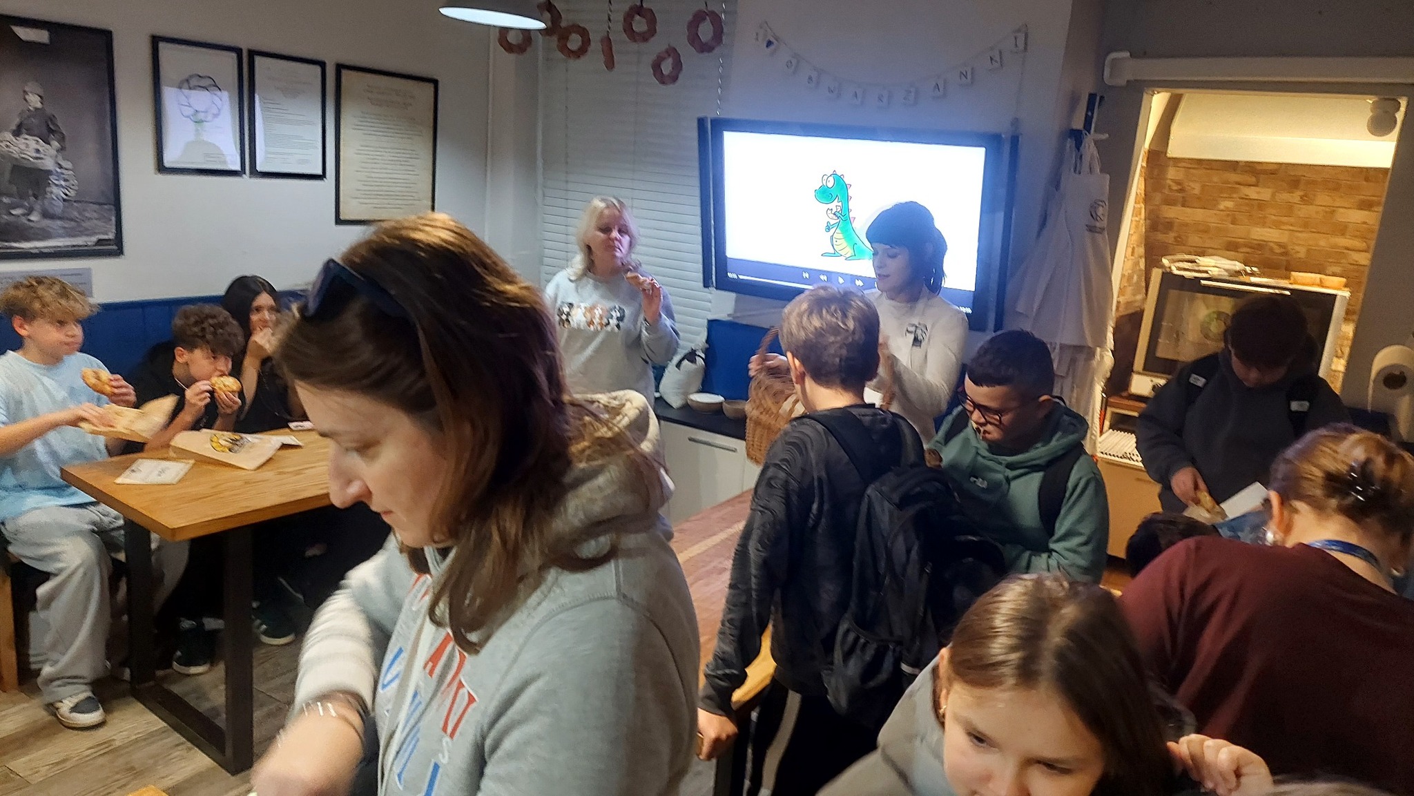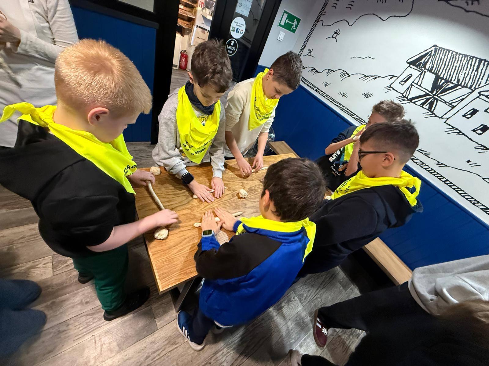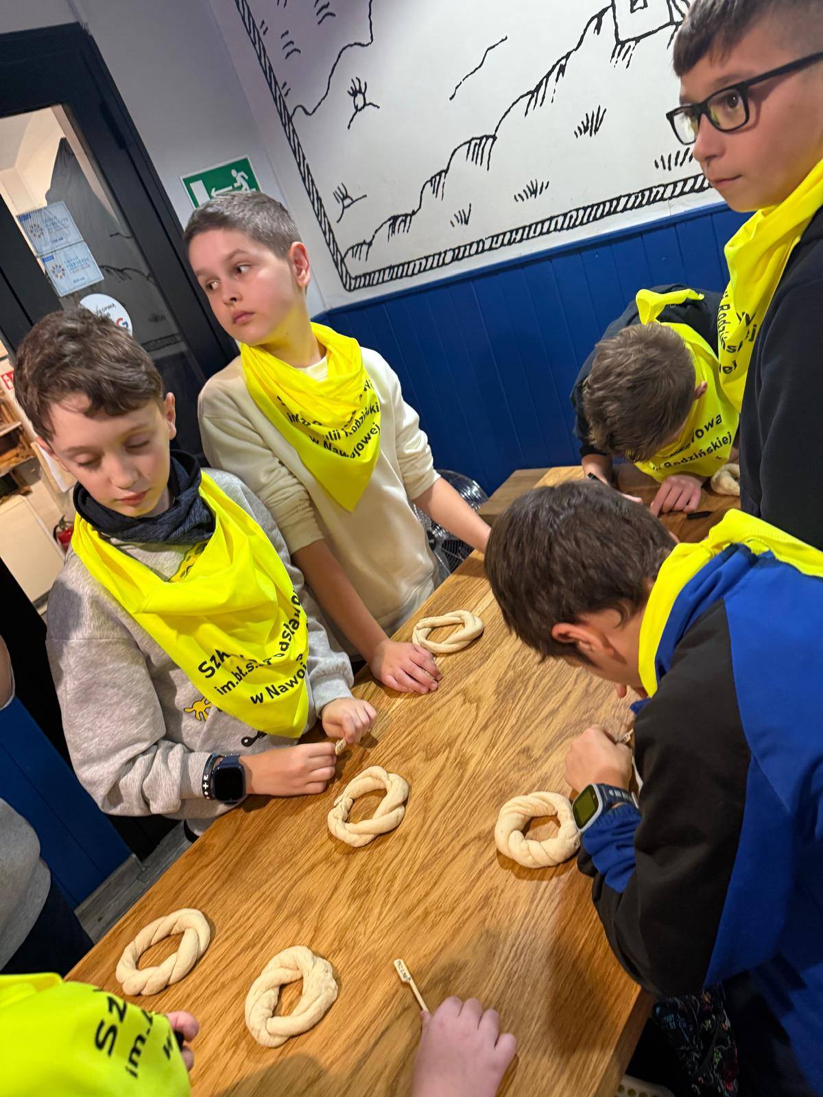 Pierwszym punktem programu było Muzeum Obwarzanka, gdzie nasi uczniowie poznali historię tego krakowskiego przysmaku i własnoręcznie przygotowali swoje obwarzankowe arcydzieła. Było pachnąco, smacznie i bardzo twórczo. Następnie dzieci wzięły udział w warsztatach teatralnych w Teatrze Groteska, gdzie odkrywały tajemnice świata masek i lalek teatralnych oraz poznały pracę wszystkich osób potrzebnych do wystawienia sztuki na scenie. Na zakończenie dnia odbył się spacer szlakiem krakowskich legend z panią przewodniczką, która w barwny sposób opowiadała o tajemniczych zakamarkach dawnego Krakowa. A na koniec trasy dzieci zjadły obiecany posiłek w McDonald’s, który był pyszną kropką nad „i” tej wyjątkowej wycieczki.