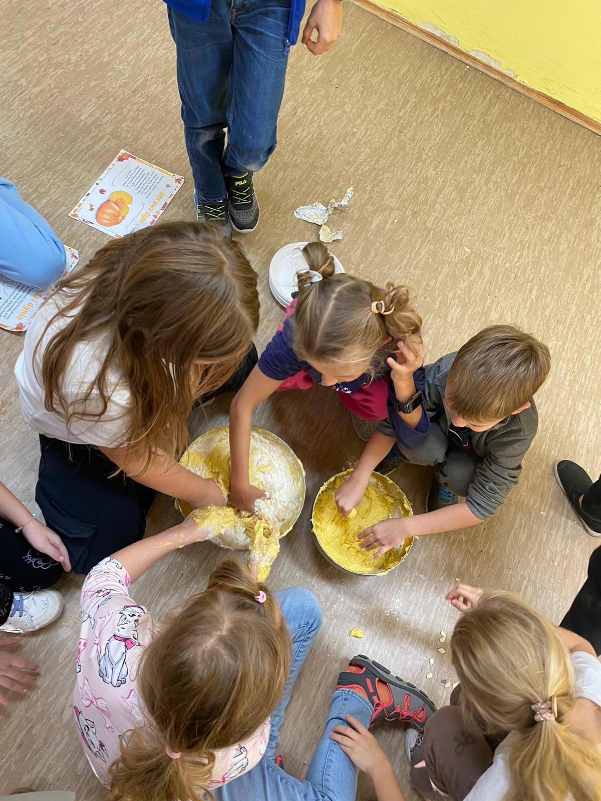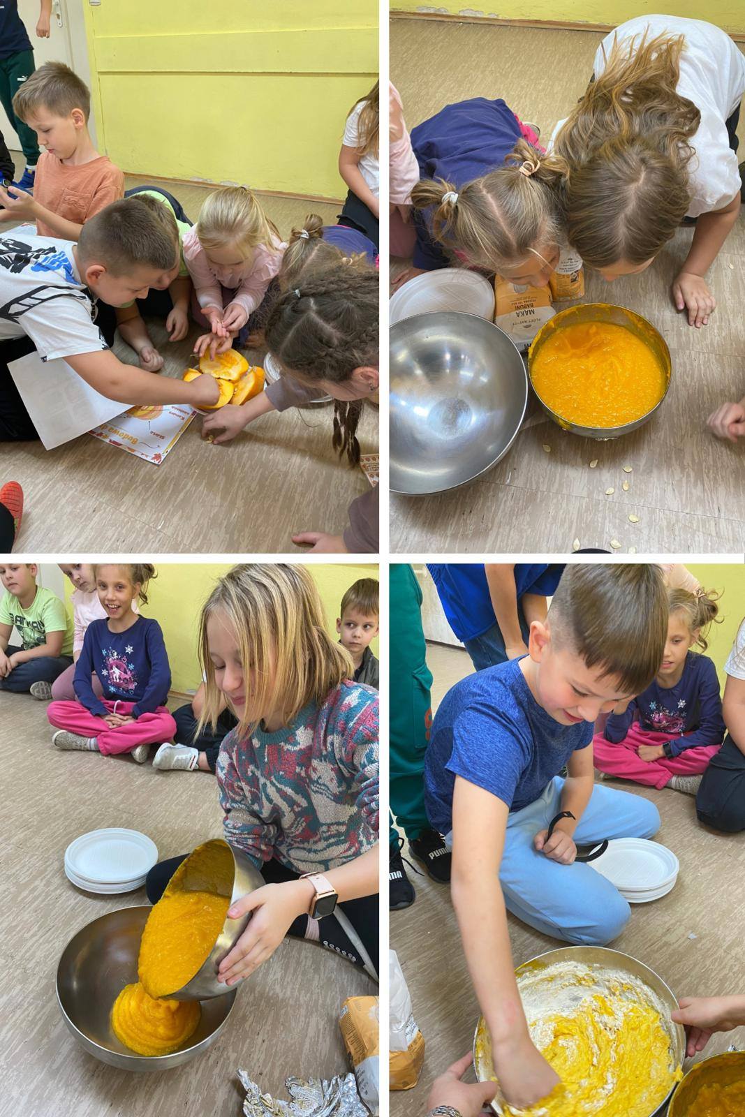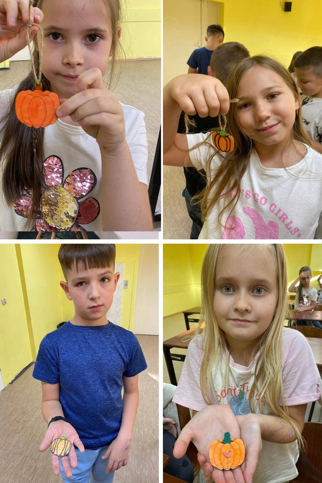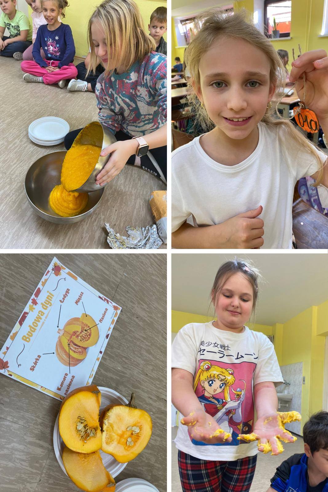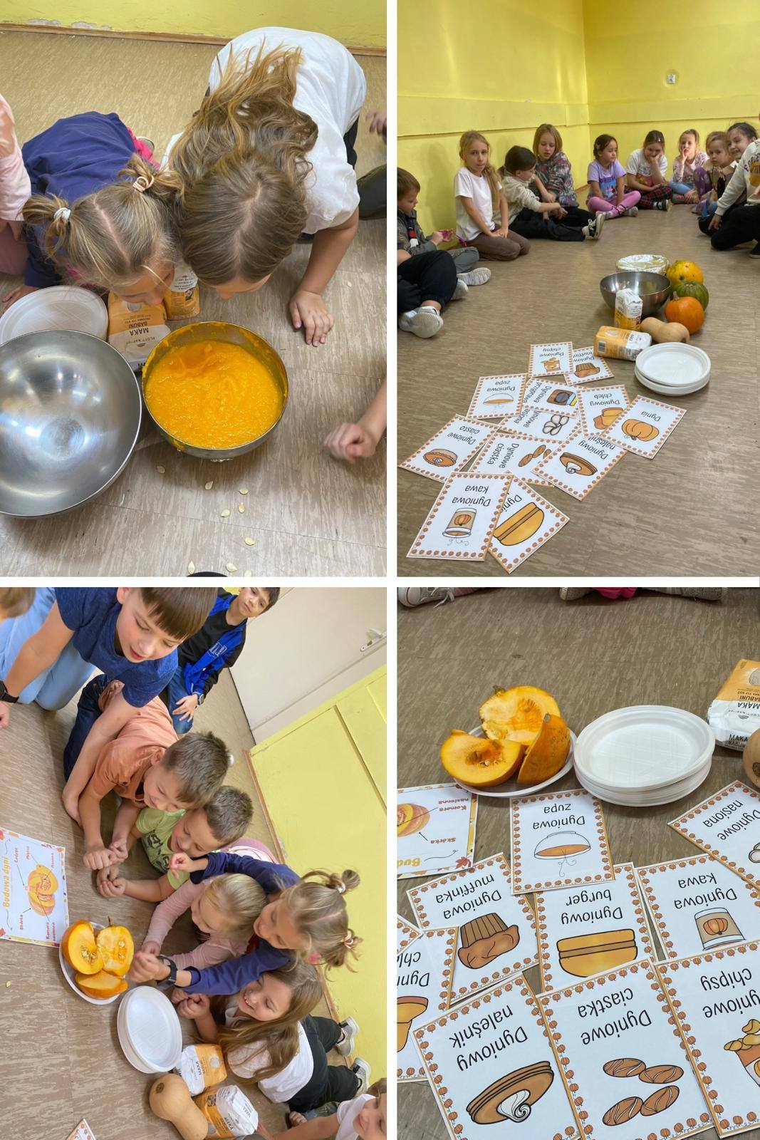 Z okazji Dnia Dyni dzieci uczestniczyły w zajęciach pełnych zabawy, śmiechu i jesiennych inspiracji. Najpierw poznały ciekawostki o dyni, oglądały jej wnętrze, ale największą atrakcją dnia była… dyniolina! To wyjątkowa dyniowa masa sensoryczna, którą dzieci same przygotowały, wyrabiały i badały wszystkimi zmysłami. Nie zabrakło też dyniowej ścianki do zdjęć oraz przebierańców w pomarańczowy strój Dyni. Na zakończenie zajęć i na pamiątkę świetliczaki wykonały dyniowe zawieszki, które z radością zabrały do domu! 😊