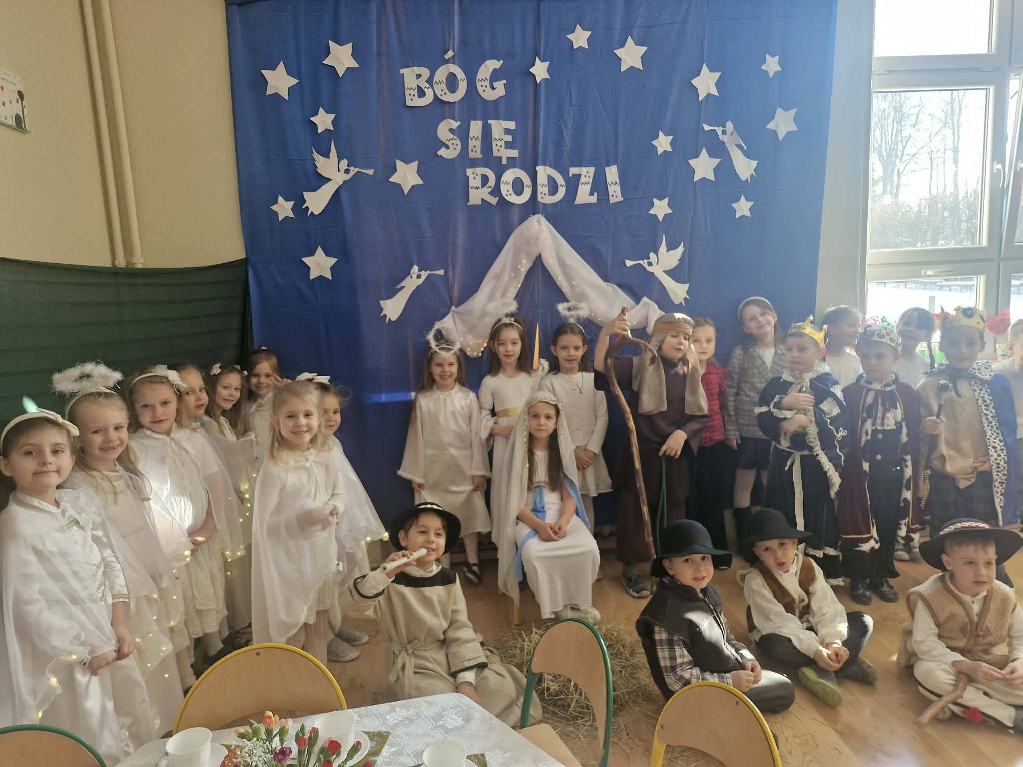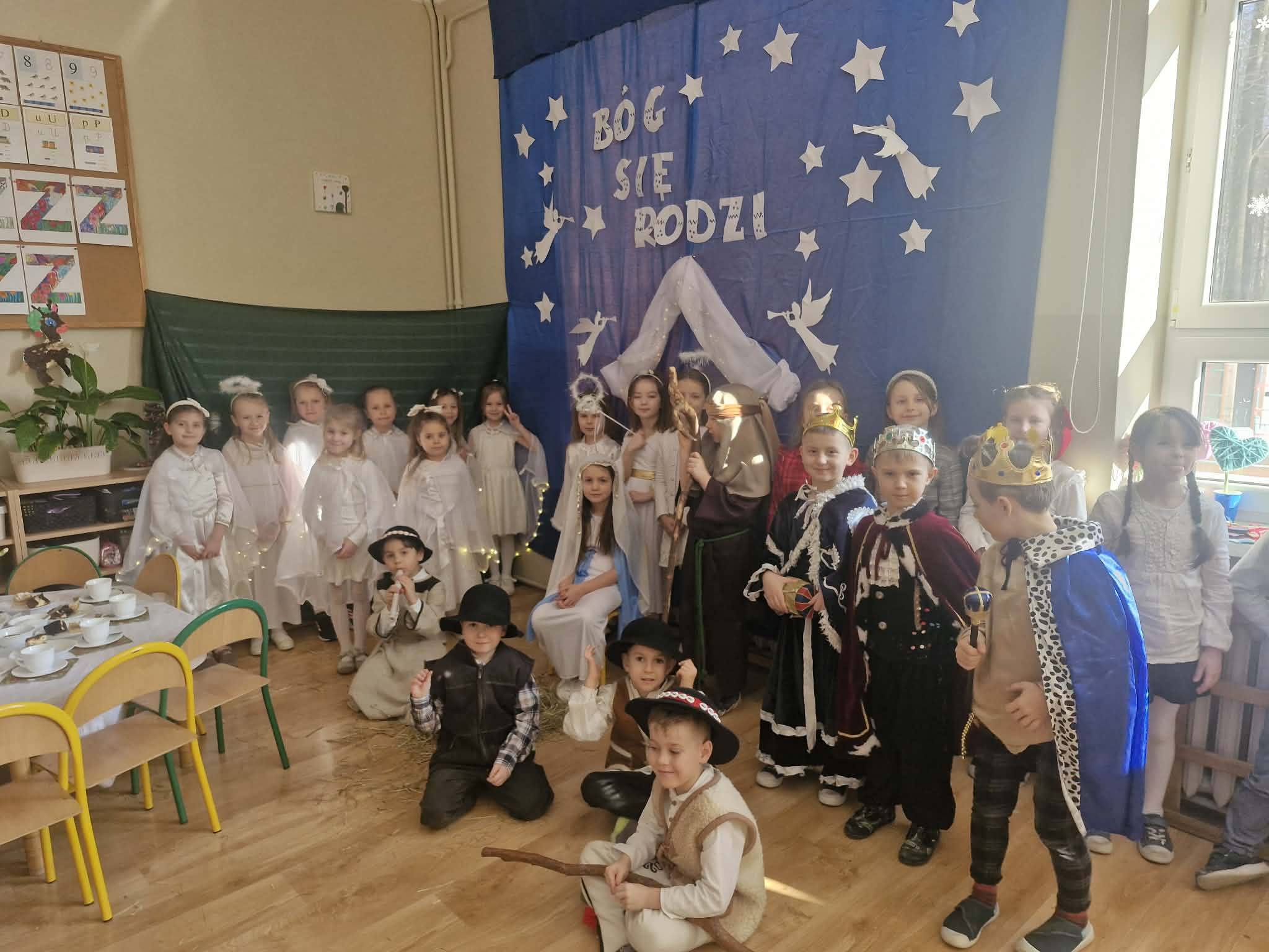 20 stycznia do oddziału 0b zawitali babcia i dziadek. Z tej okazji dzieci przygotowały wyjątkowe przedstawienie jasełkowe, które z wielkim zaangażowaniem zaprezentowały zaproszonym gościom. Nie zabrakło wspólnego śpiewania kolęd, które wprowadziło wszystkich w ciepły, świąteczny nastrój. Po występie dzieci wręczyły swoim babciom i dziadkom własnoręcznie przygotowane prezenty, dziękując im za miłość, troskę i obecność. Spotkanie było pełne wzruszeń, uśmiechów oraz radości i na długo pozostanie w pamięci uczestników!![]()