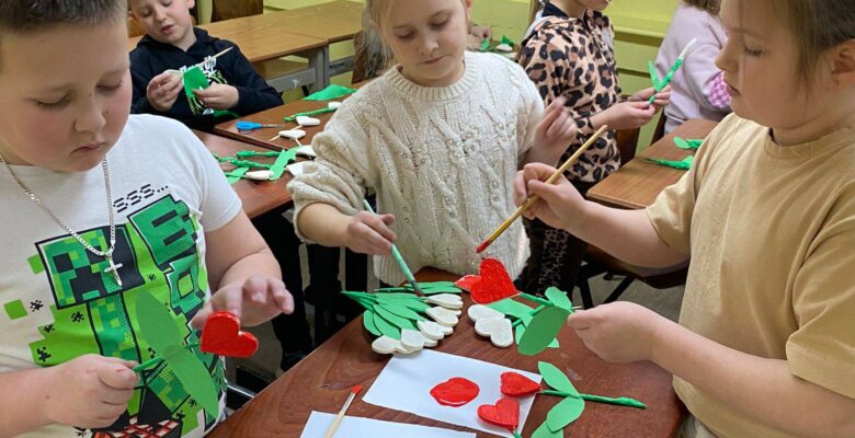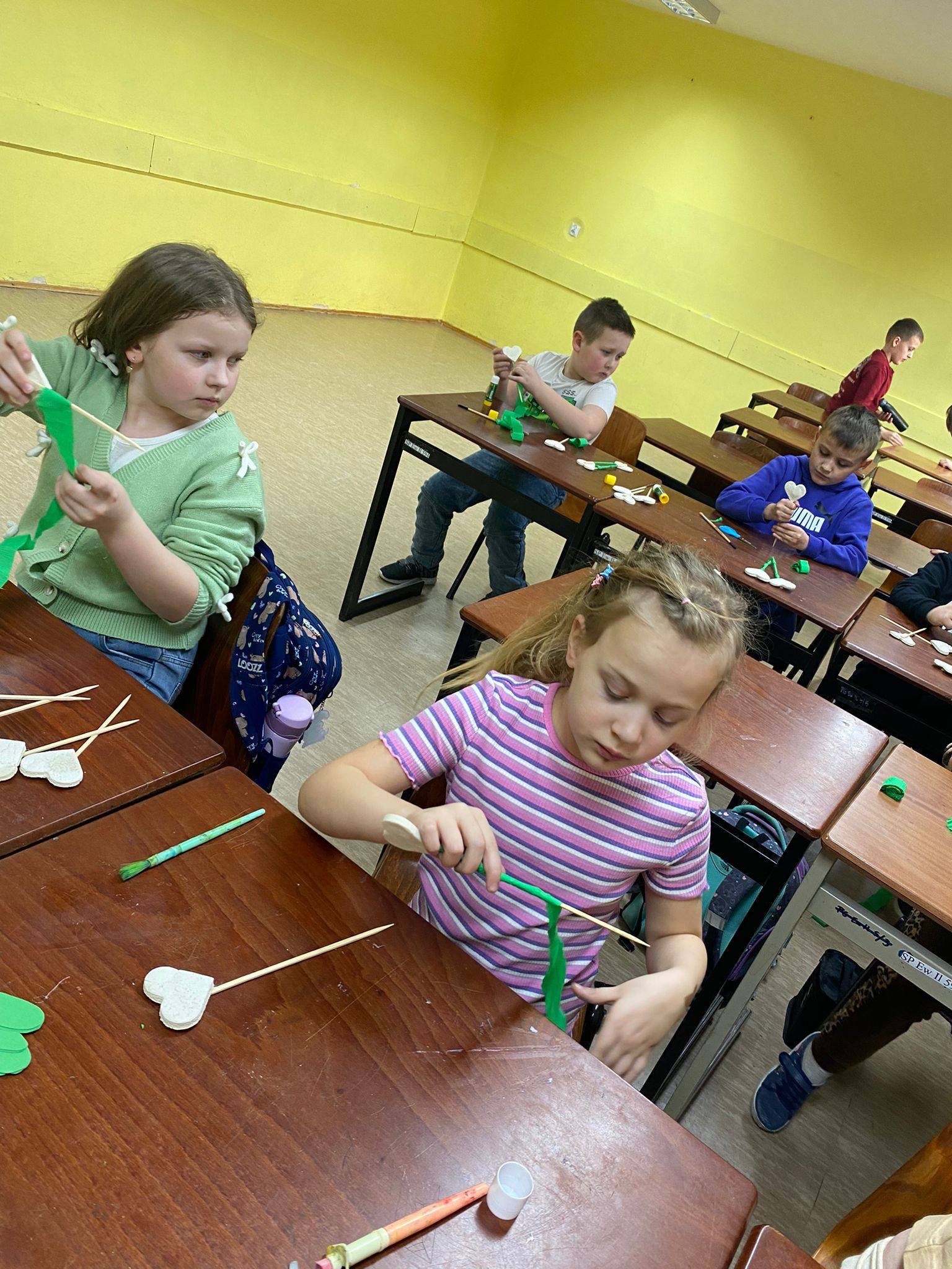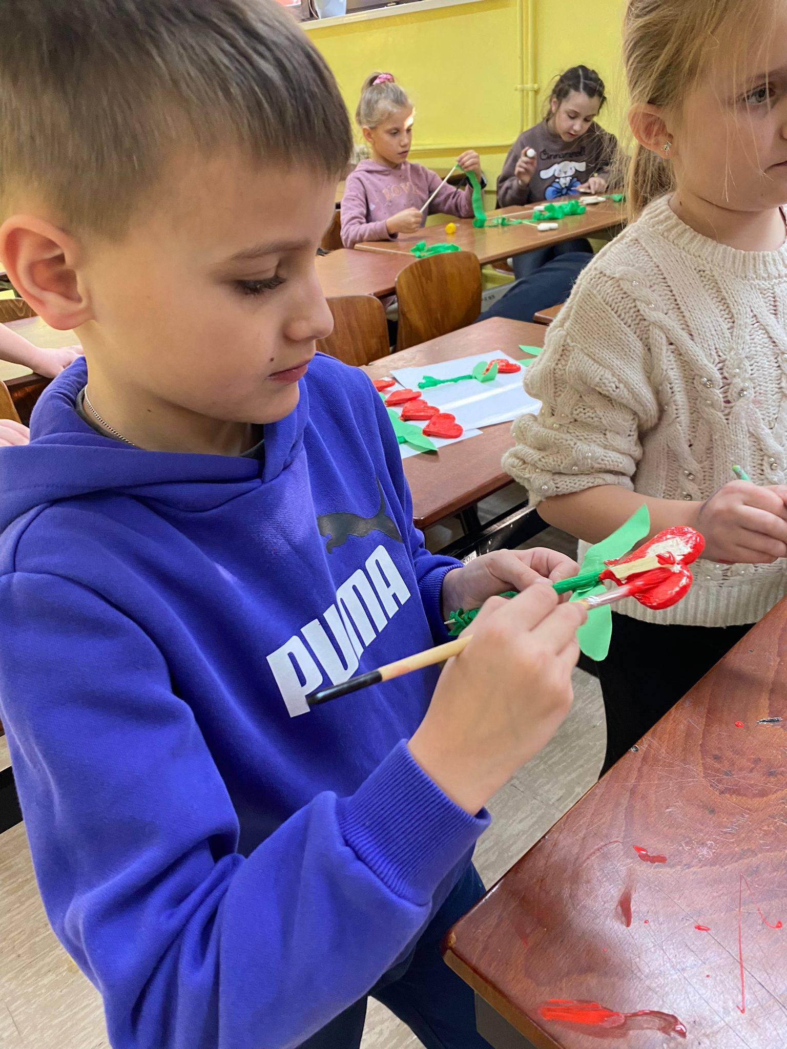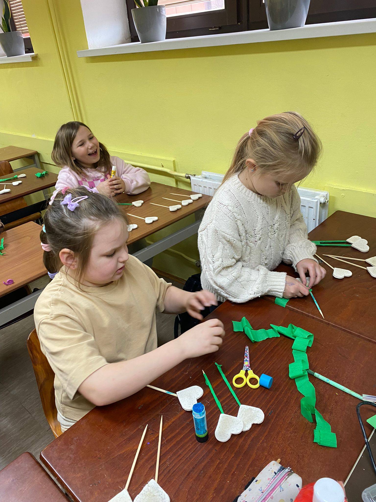 Podczas minionego tygodnia zorganizowano zajęcia plastyczno-techniczne związane z obchodami Dnia Babci i Dziadka. Świetliczaki pracowały na gotowych elementach z masy solnej w kształcie serc, które samodzielnie malowali farbami plakatowymi. Następnie dzieci przygotowały łodygi oraz liście, wykorzystując kolorowy papier i bibułę, którą skręcały i formowały. Poszczególne elementy zostały dopasowane i połączone w całość, tworząc okolicznościowe kwiaty na patyczkach. Cały czas dbamy, by zajęcia w naszej świetlicy: rozwijały sprawność manualną, kreatywność, integrowały, a tym razem jeszcze umożliwiły dzieciom wyrażenie uczuć wobec swoich babć i dziadków!![]()