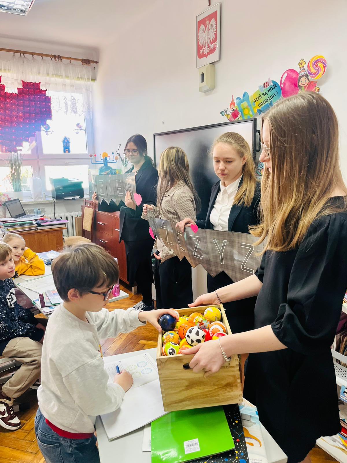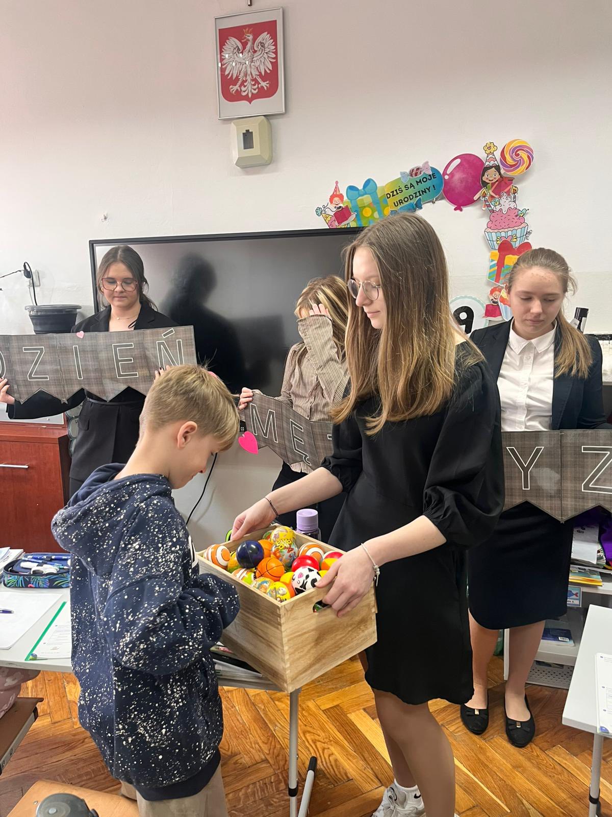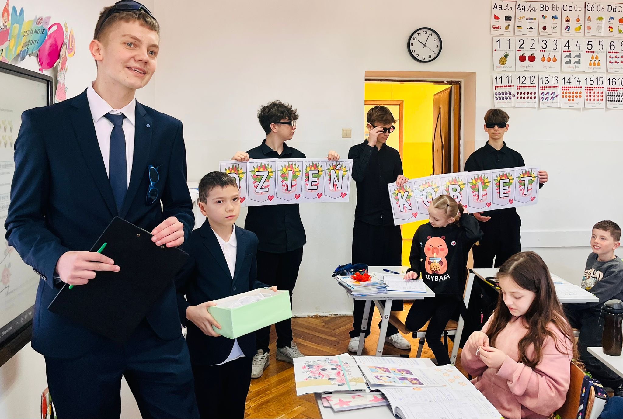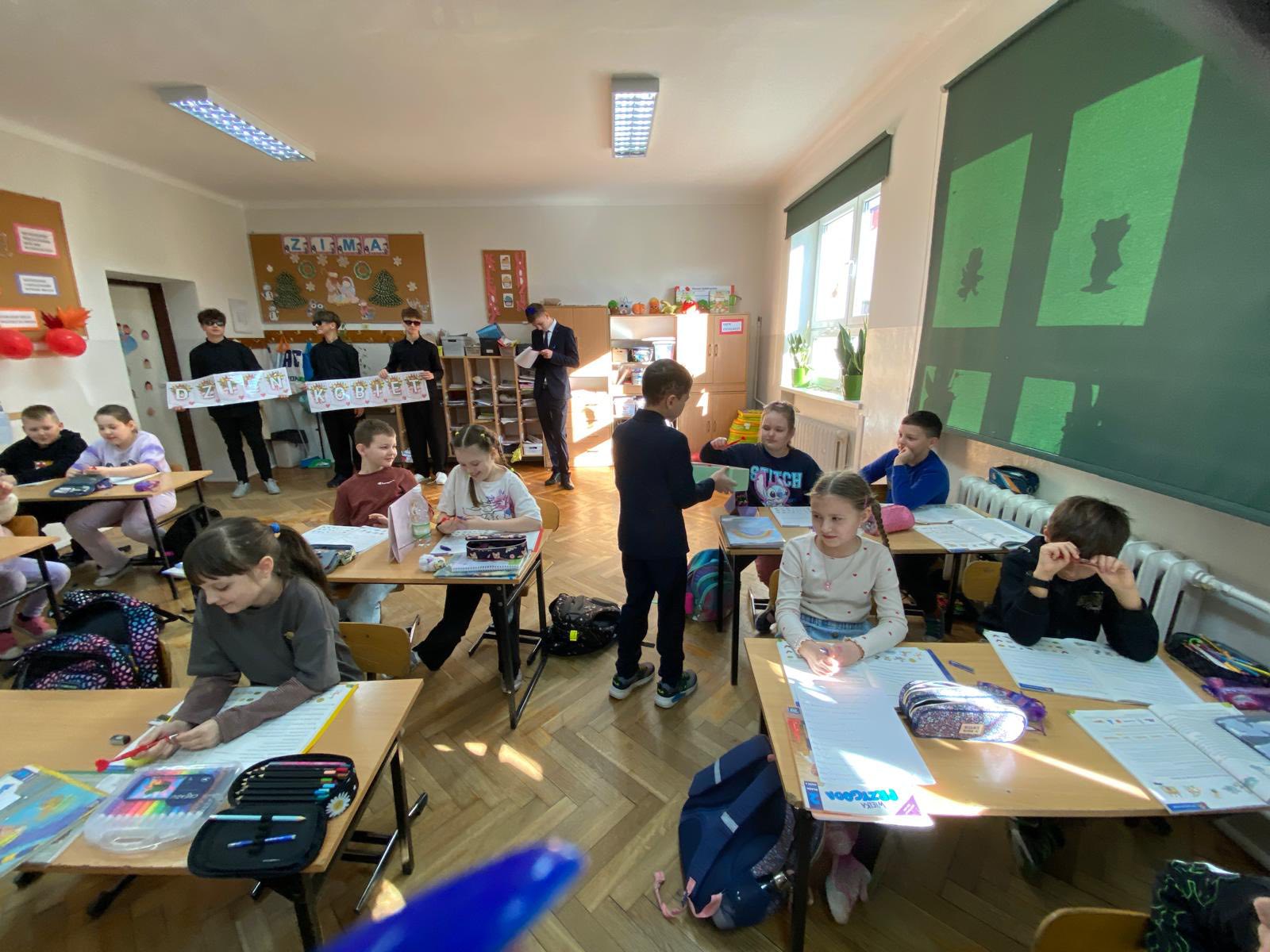 W ostatnich dniach w naszej szkole panowała wyjątkowo serdeczna atmosfera związana ze świętowaniem Dnia Kobiet i Dnia Mężczyzn. W piątek młodzi dżentelmeni z Samorządu Uczniowskiego, ubrani w eleganckie koszule, odwiedzili wszystkie 19 oddziałów, a także panie z obsługi i administracji oraz panie z ZOE, składając im życzenia i wręczając drobne upominki. Małe kobietki z klas 0–3 otrzymały czerwone długopisy w kształcie serca, natomiast starsze uczennice z klas 4–8 obdarowano uroczymi lusterkami z kokardką. Natomiast we wtorek role się odwróciły! Tym razem to dziewczęta, również elegancko ubrane, wyruszyły z życzeniami do wszystkich klas, pana dyrektora, nauczycieli i panów z obsługi. Młodsi chłopcy dostali drobne prezenty, takie jak piłeczki czy gniotki, a starszym uczniom z klas 4–8 wręczono elastyczne, giętkie długopisy oraz złożono serdeczne życzenia wszystkim mężczyznom, zarówno tym małym, jak i dużym. O dorosłych także nie zapomniano – panowie pamiętali o paniach, a panie o panach. W klasach dzieci również obdarowywały się nawzajem prezentami, tworząc przy tym atmosferę pełną szacunku, uśmiechu i życzliwości!![]()