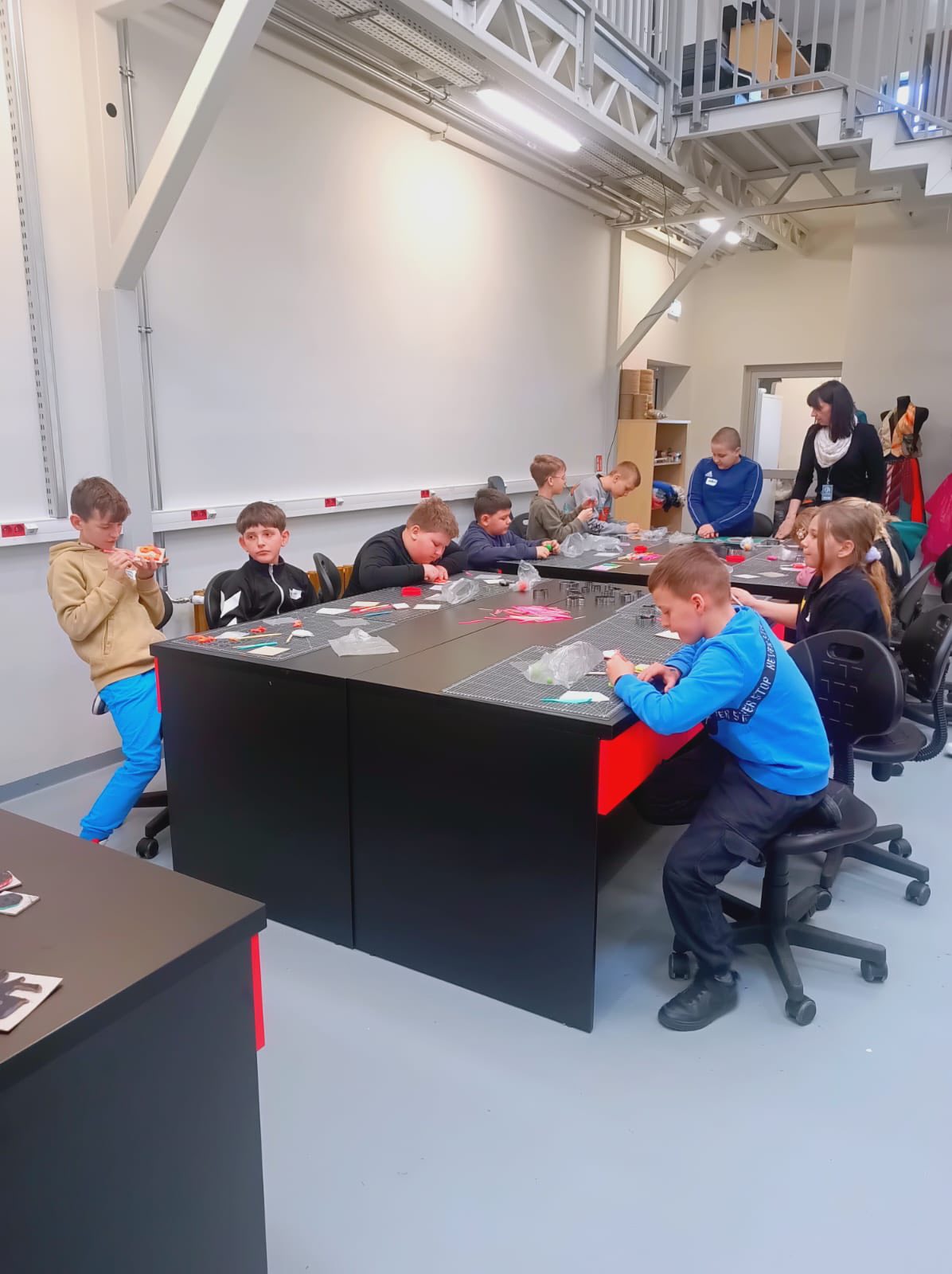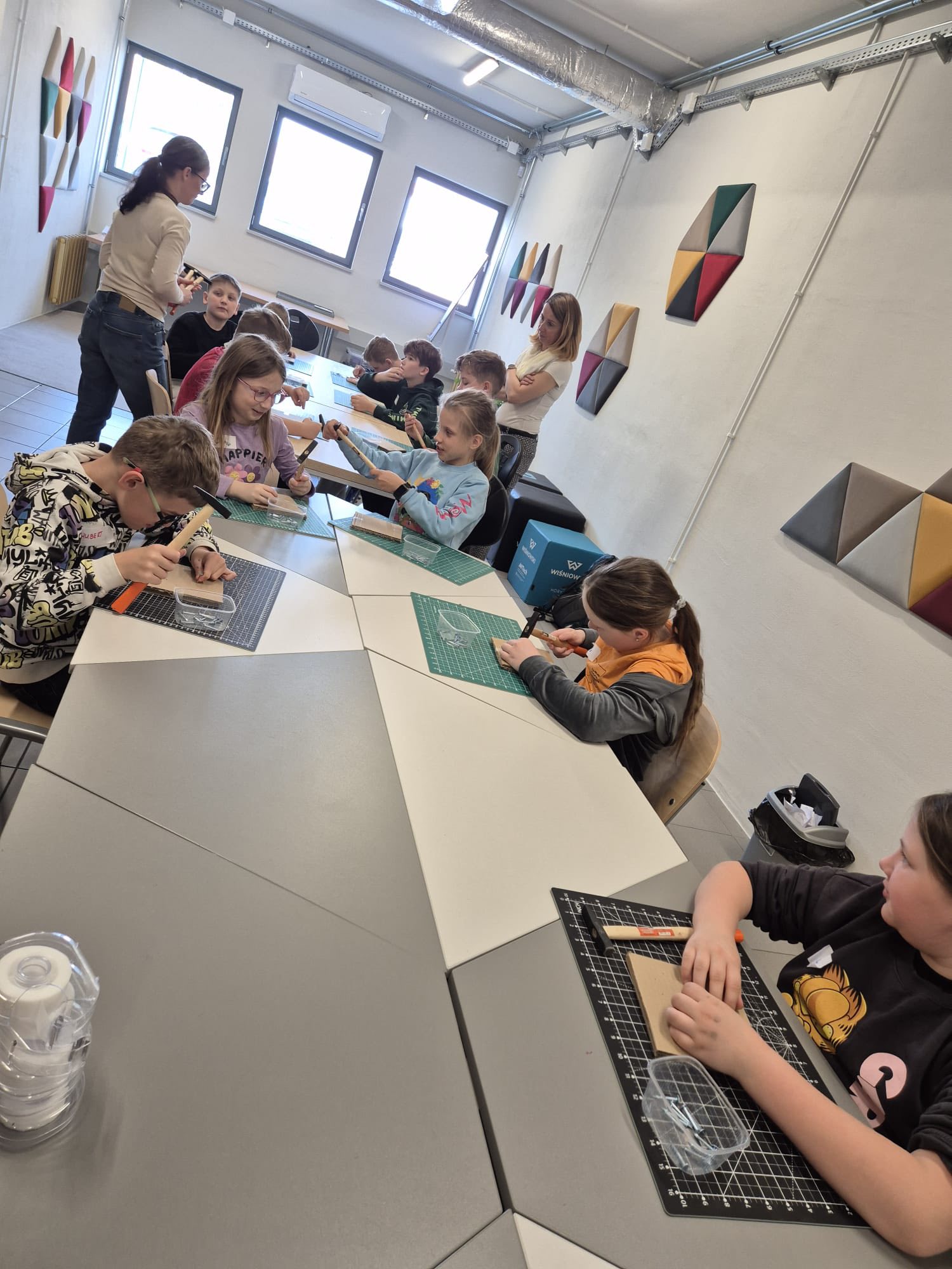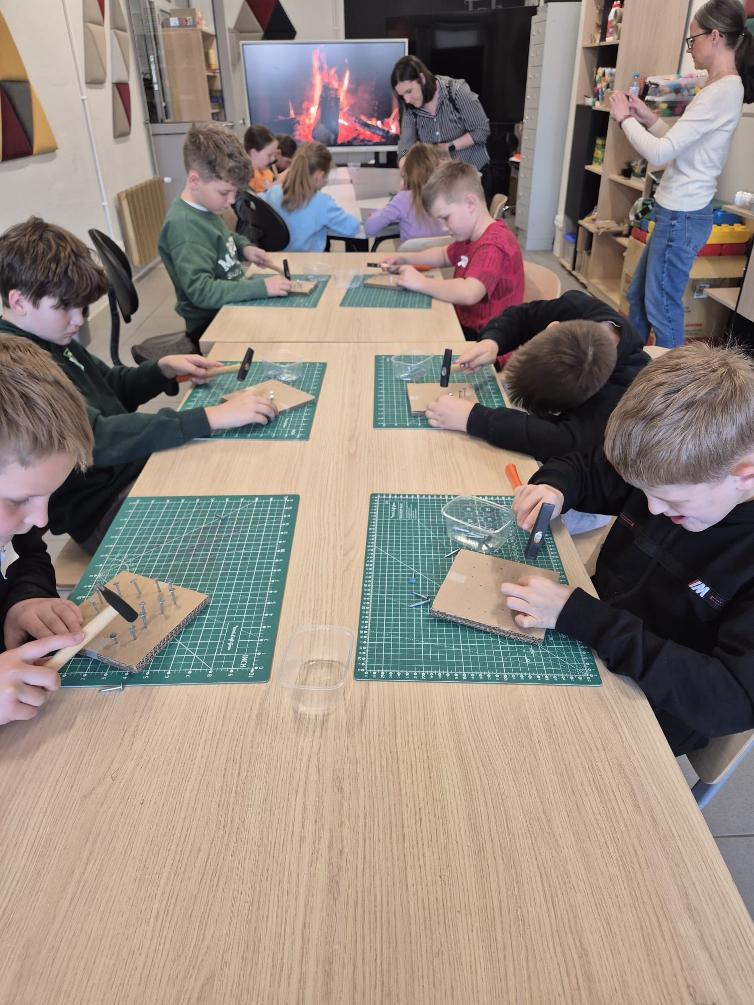 23 marca trzecioklasiści pojechali do siedziby firmy Wiśniowski na warsztaty, które obejmowały dwa ciekawe tematy. Pierwszym z nich było „Zaprojektuj własną pieczątkę”. Podczas tych zajęć dzieci tworzyły proste rysunki graficzne w formie 3D, a następnie zamieniały je w własnoręcznie wykonane pieczątki. Drugi temat to „String art”, czyli tworzenie obrazów z nici i gwoździ. Uczniowie wykonali piękne serca, plecione z nici na wzór pajęczyny. Zajęcia były nie tylko świetną zabawą, ale także okazją do rozwijania kreatywności i zdolności manualnych. Dzieci wróciły bardzo zadowolone i dumne ze swoich prac!