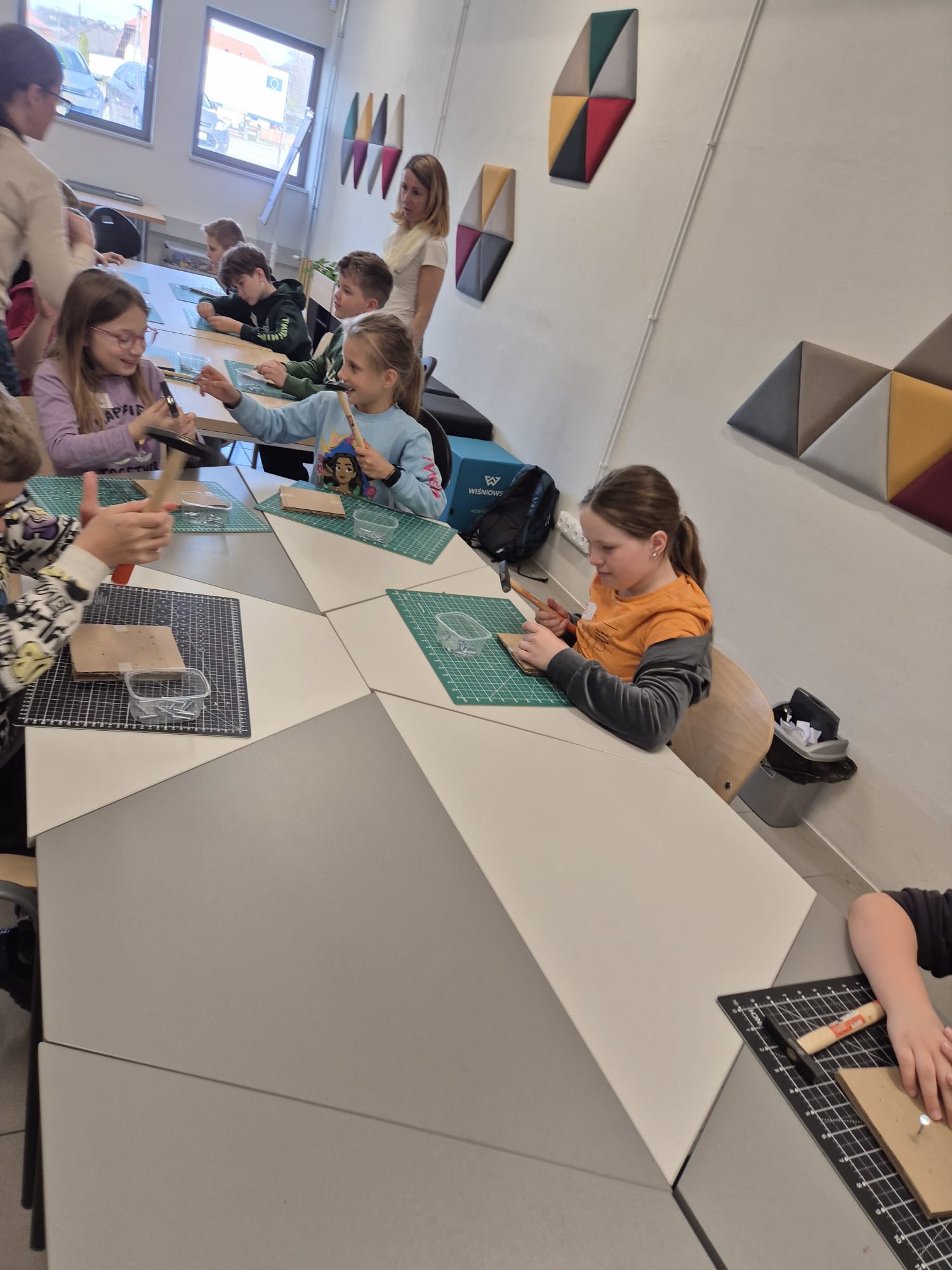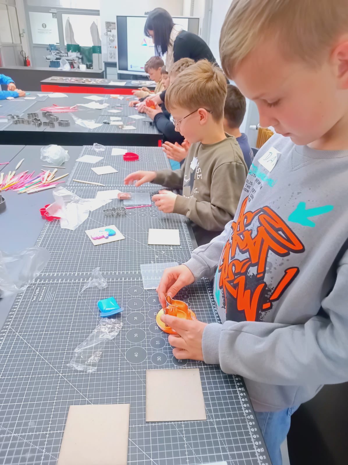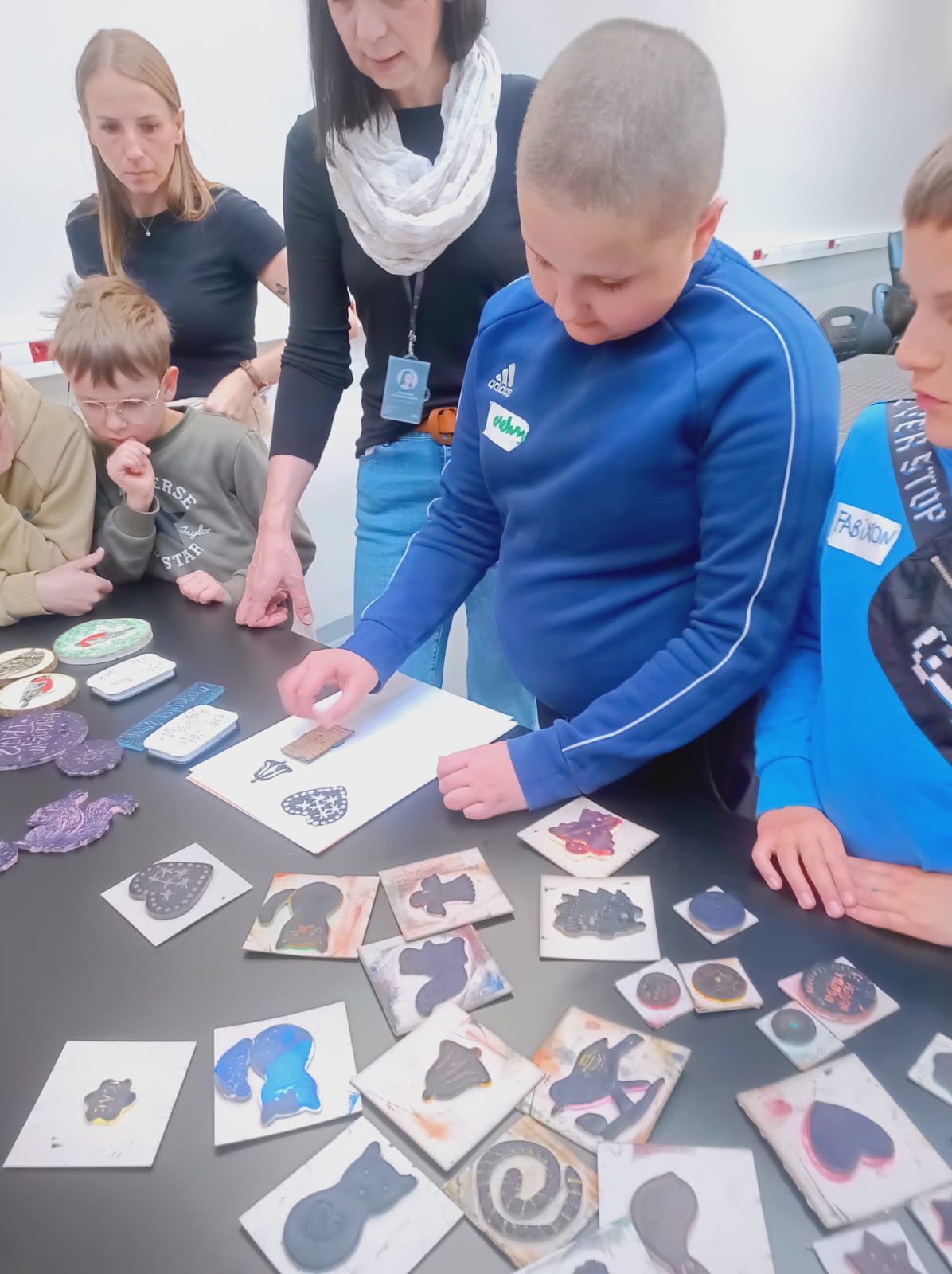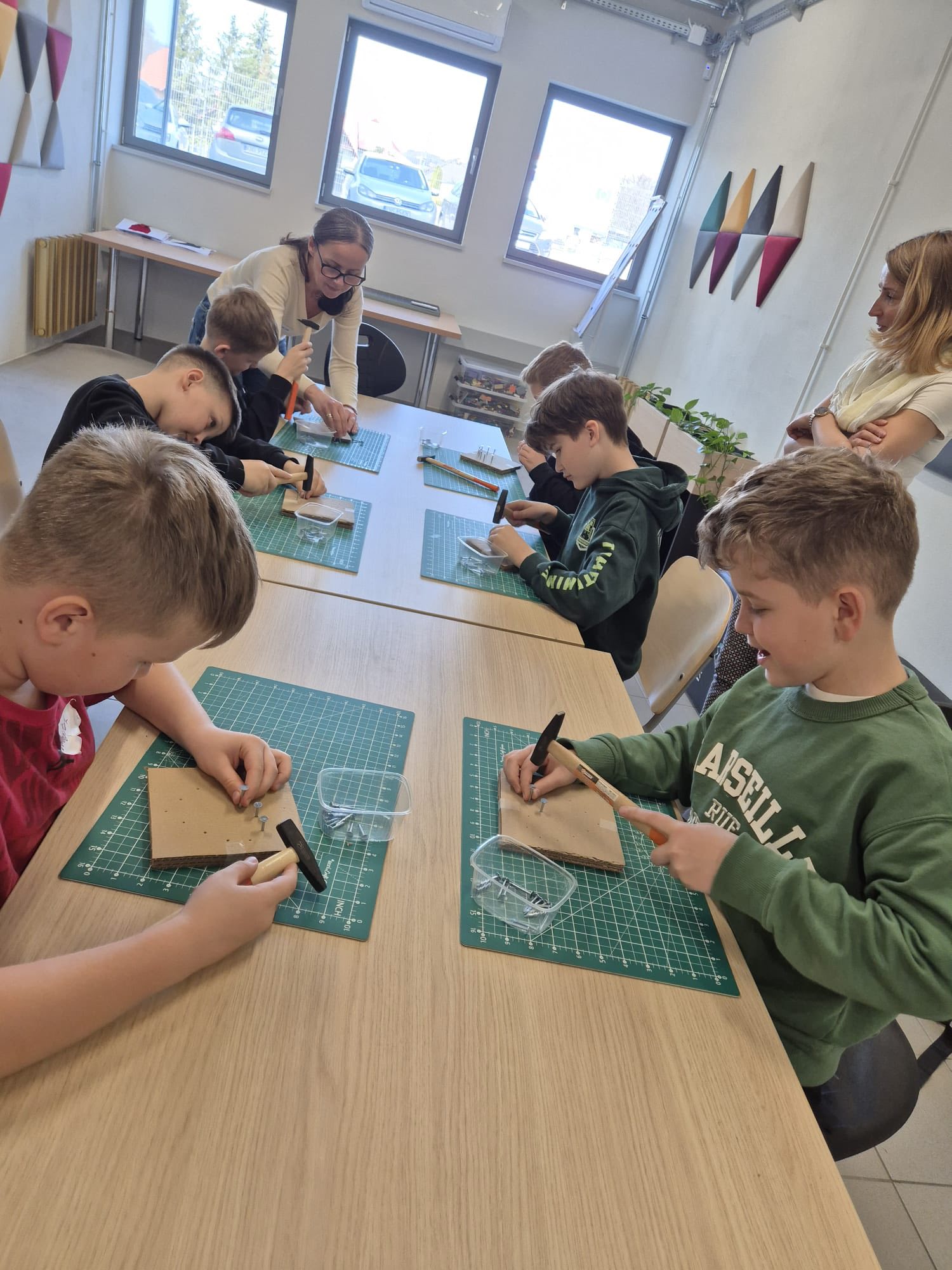 23 marca trzecioklasiści pojechali do siedziby firmy Wiśniowski na warsztaty, które obejmowały dwa ciekawe tematy. Pierwszym z nich było „Zaprojektuj własną pieczątkę”. Podczas tych zajęć dzieci tworzyły proste rysunki graficzne w formie 3D, a następnie zamieniały je w własnoręcznie wykonane pieczątki. Drugi temat to „String art”, czyli tworzenie obrazów z nici i gwoździ. Uczniowie wykonali piękne serca, plecione z nici na wzór pajęczyny. Zajęcia były nie tylko świetną zabawą, ale także okazją do rozwijania kreatywności i zdolności manualnych. Dzieci wróciły bardzo zadowolone i dumne ze swoich prac!