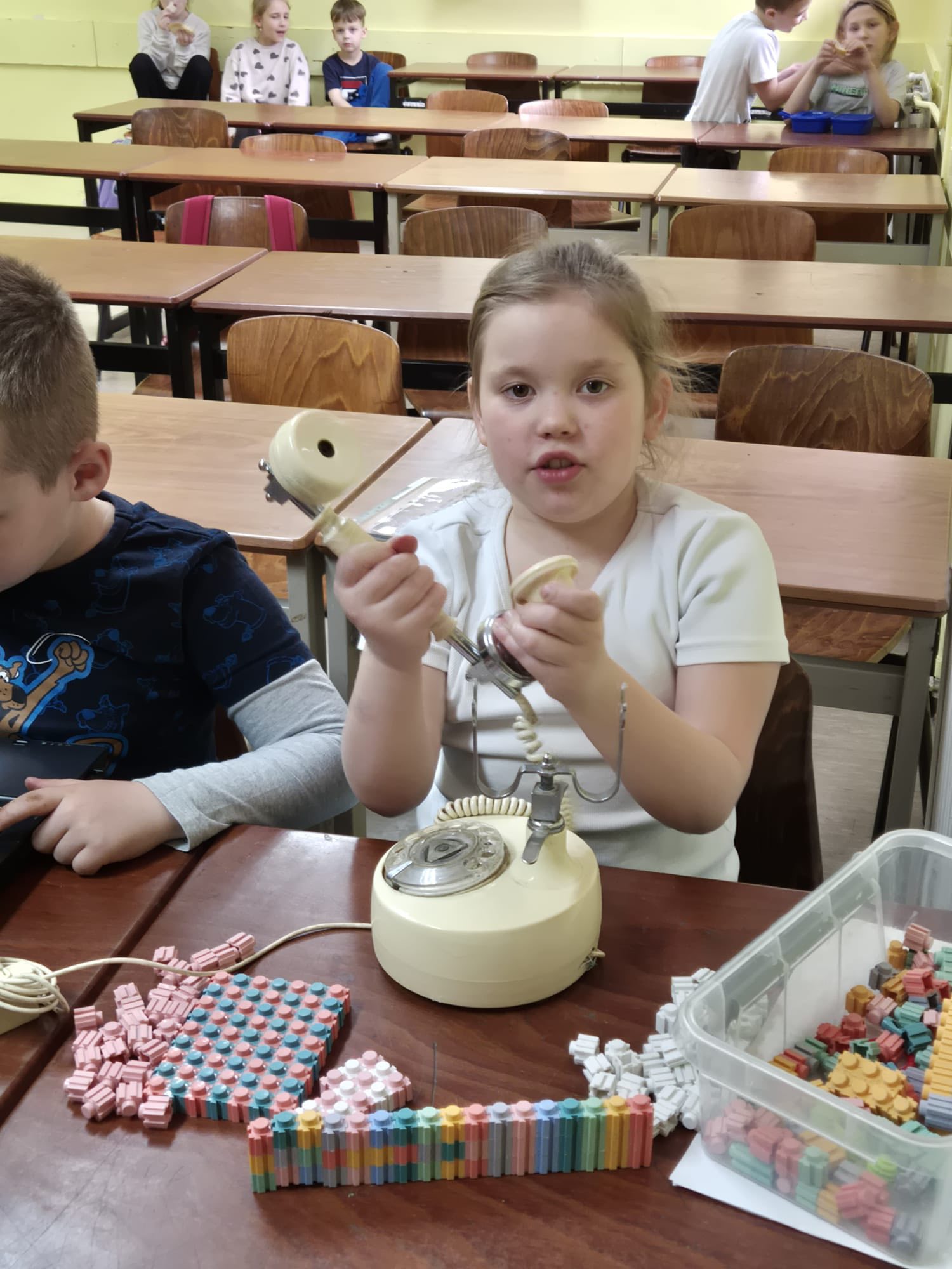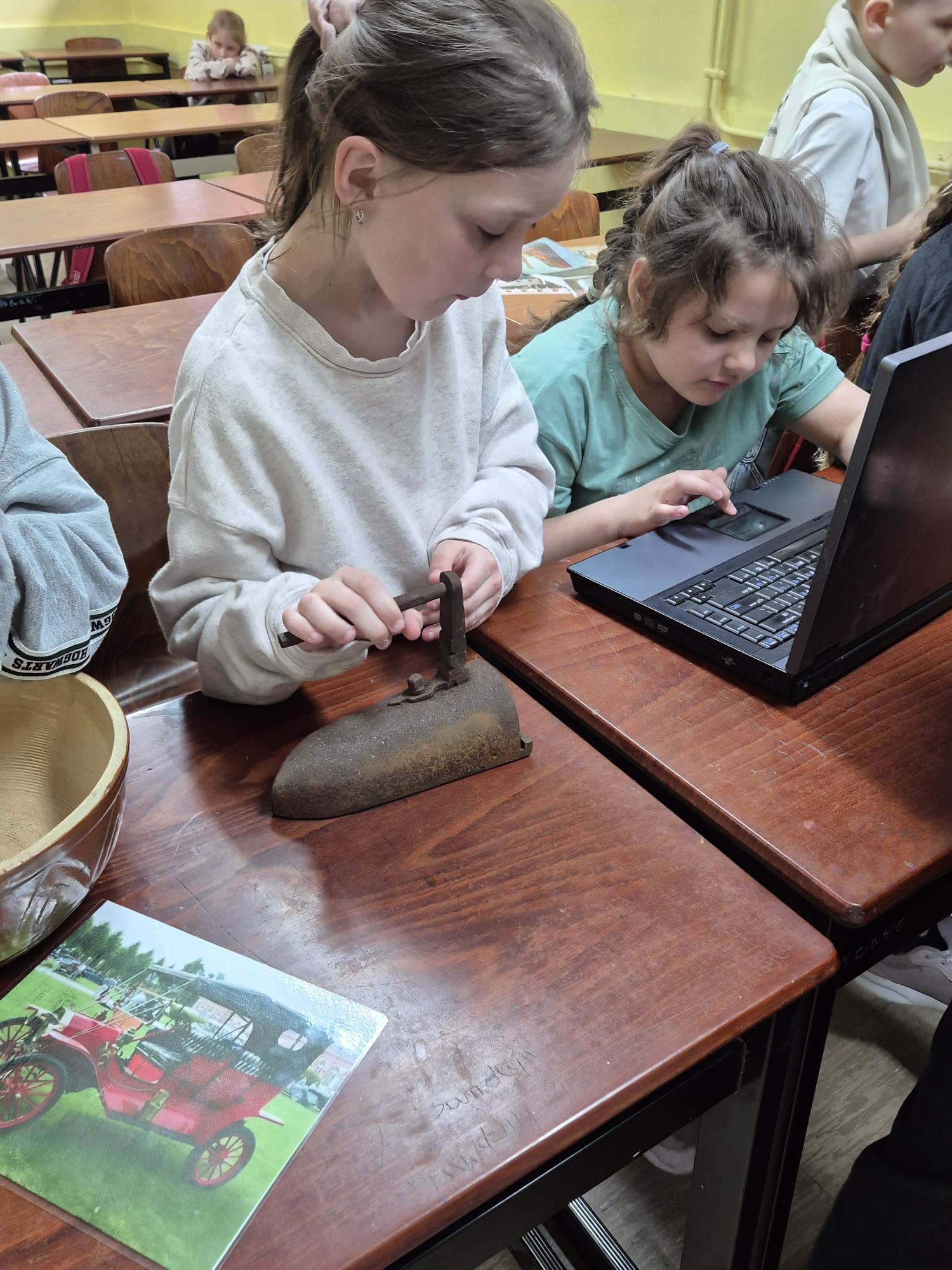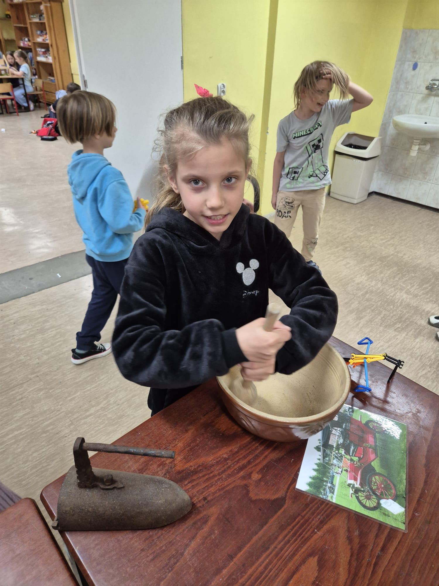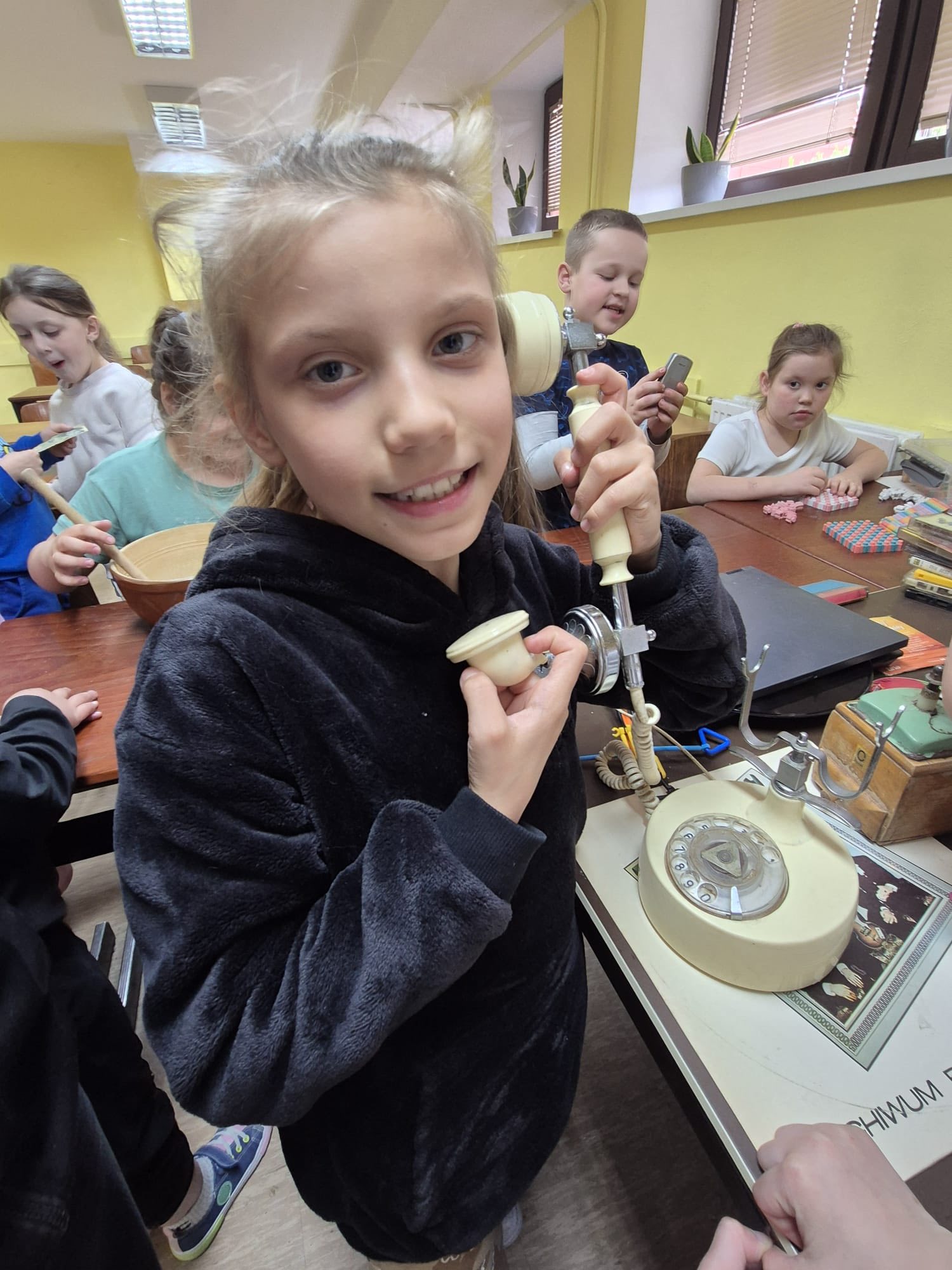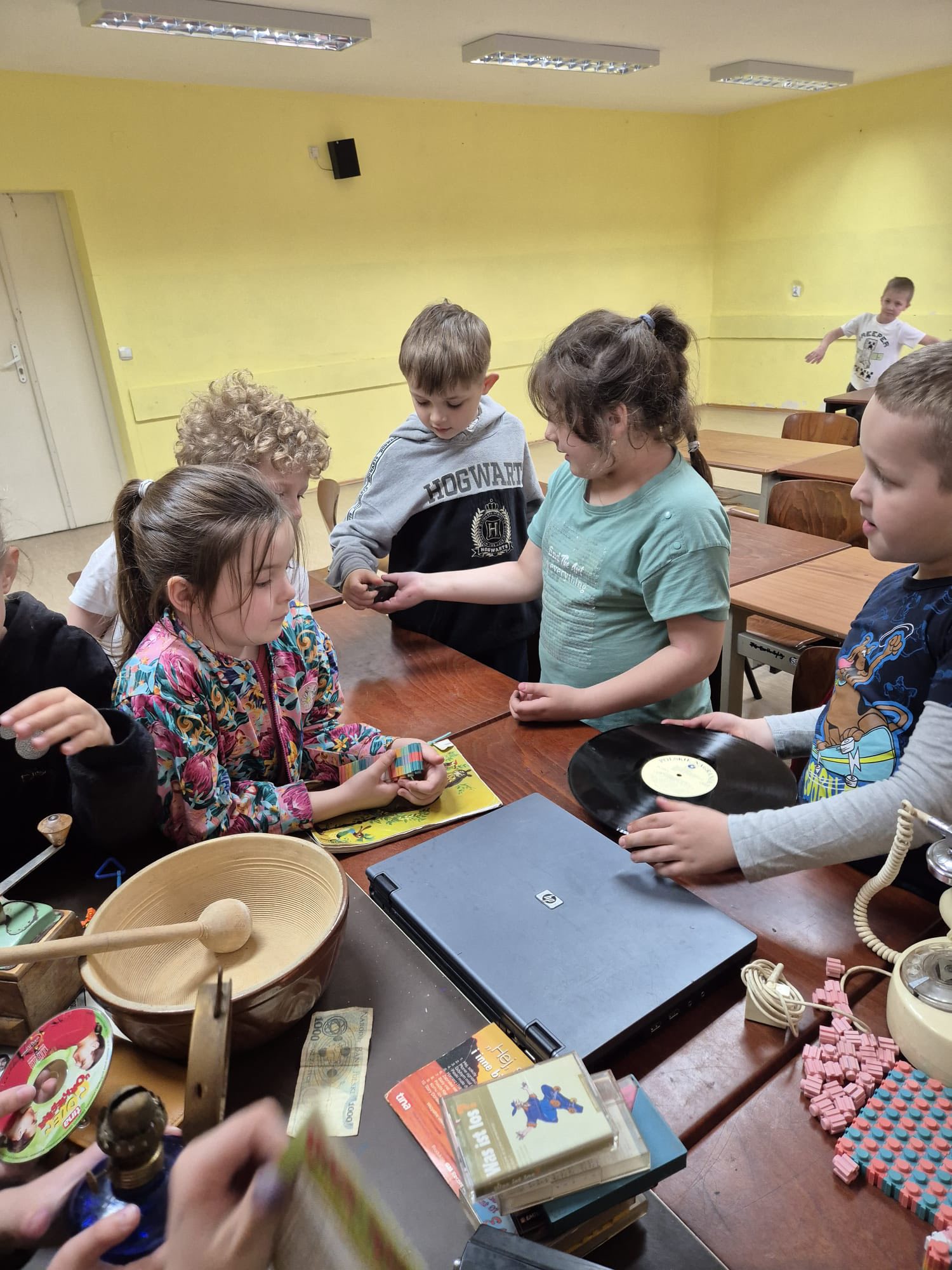 Choć to nietypowe święto przypada 1 marca, to my obchodziliśmy go dzisiaj. Dzieci miały okazję oglądać fotografie m.in. pierwszego roweru, samochodu czy pralki „Frani”, ale to nie wszystko – mogły też przyjrzeć się z bliska prawdziwym „starociom”, które udało się specjalnie dla nich zdobyć. Świetliczaki z ciekawością testowały telefon z tarczą, aparat kliszowy, makutrę, żelazko na duszę, dość wiekowy laptop, gramofon z płytami winylowymi czy stare pieniądze. Nie brakowało pytań, śmiechu i zdziwienia, szczególnie przy próbie „obsługi” niektórych sprzętów. Rozmawiali również o dawnych zawodach, takich jak np kuśnierz, zecer czy zdun – nie było łatwo odgadnąć, czym zajmowali się ci ludzie. Dla części dzieci sporym zaskoczeniem był np. fakt, że kiedyś mamy nie miały luksusu używania jednorazowych pieluszek.🫣 To był dzień pełen ciekawostek, odkryć i wspólnej zabawy pokazujący, jak bardzo zmienił się świat na przestrzeni lat, a pani, która jednak zna większość z tych przedmiotów, mogła poczuć się jak prawdziwy dinozaur.