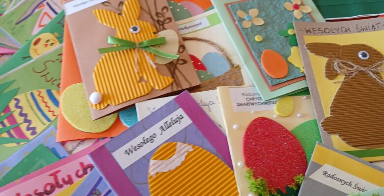 Wolontariuszki i wolontariusze w lutym i marcu przygotowały 67 kartek świątecznych dla Nawojowskiego Centrum Wolontariatu i Caritas w Nawojowej. Kartki te zostały przekazane osobom samotnym i starszym przed Świętami Wielkanocnymi.