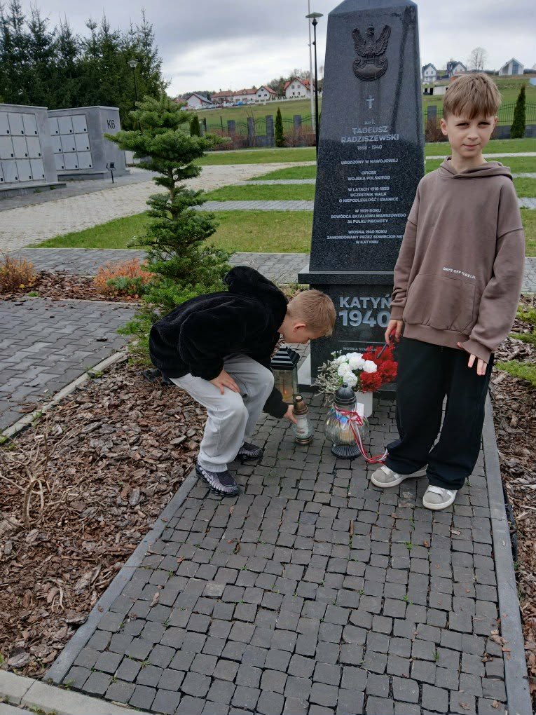 W kwietnia1940 roku w Katyniu został zamordowany przez sowietów kpt. T. I Radziszewski, któremu pośmiertnie nadano stopień majora. Został zamordowany prawdopodobnie pomiędzy 13 a 14 kwietnia 1940 roku. 86 rocznicę śmierci uczcili chłopcy z klasy 8 b składając kwiaty i paląc znicze w pod pomnikiem w dzień jego śmierci. Również klasa 6b wraz z nauczycielką wybrała się na cmentarz pod pomnik, aby zapalić znicza i złożyć hołd bohaterowi ziemi nawojowskiej. Uczniowie z zaciekawieniem wysłuchali historii T. I. Radziszewskiego.